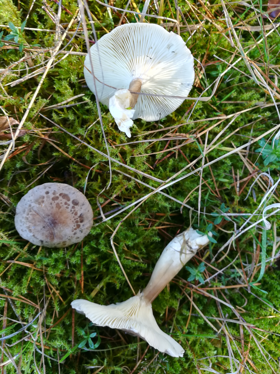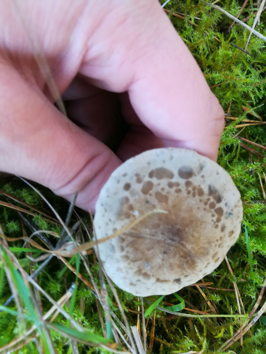 Der eine Fruchtkörper mit den Wasserflecken auf dem Hut, welcher ist denn das von unten?