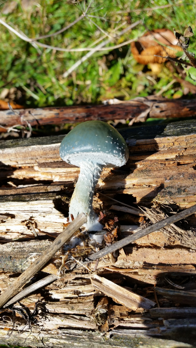 Jein. Also wenn du zwischen Grünspanträuschling (Stropharia aeruginosa) und Blaugrünem Träuschling (Stropharia caerula) unterscheiden willst, dann muss man mehr Dinge wissen, vor alem die Sporenpulverfarbe im Abwurf. Und die Lamellenschneiden sollte man sehen können.