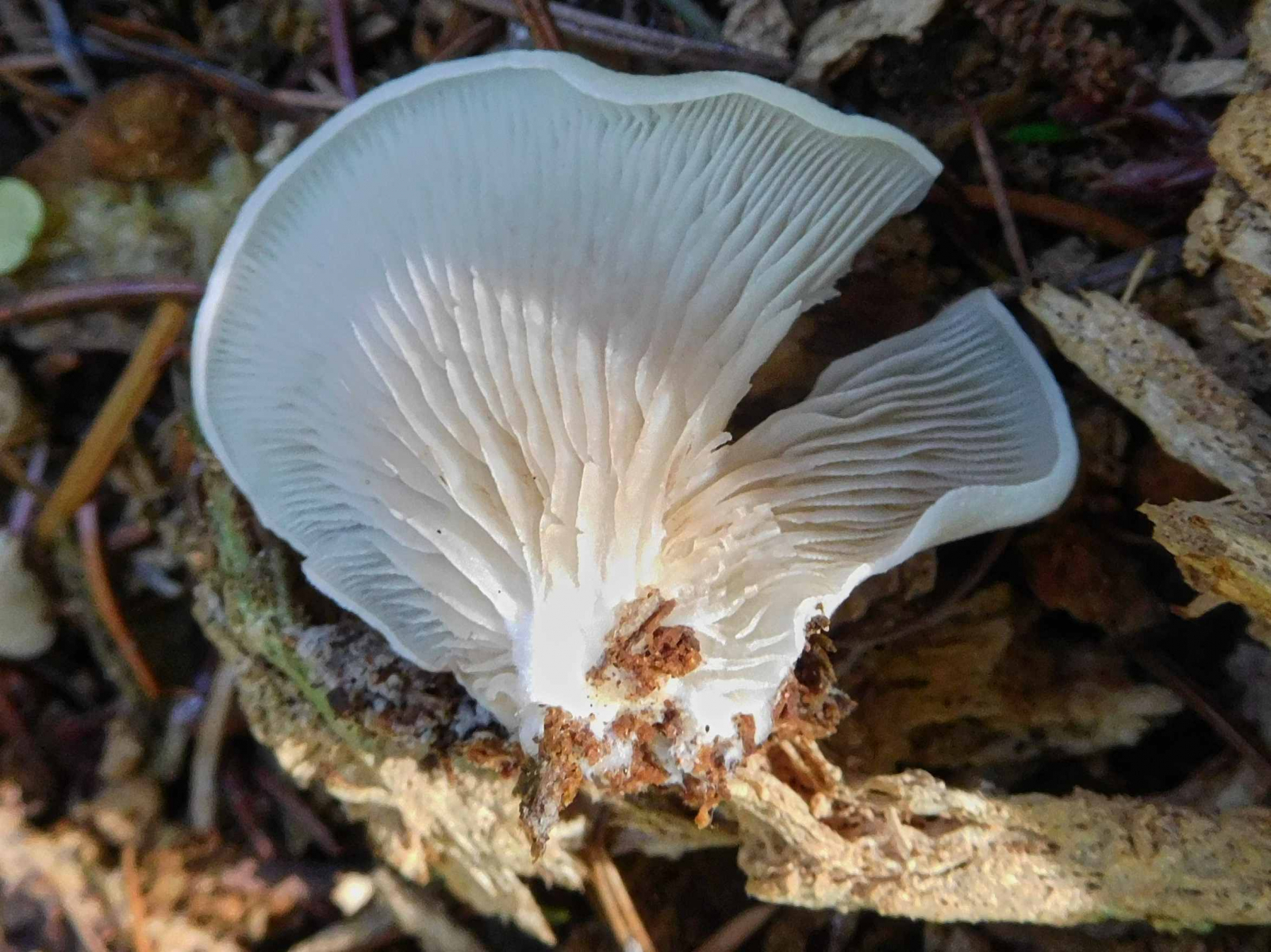 Das Stummelfüßchen / Seitling an dem morschen Nadelholzstumpf könntest du mal aussporen lassen, auch wenn Pleurocybellla porrigens (Ohrförmiger Seitling) in deiner Ecke eine ziemlich Überraschung sein dürfte: Möglich wär's ja. Sporenpulver wäre dann weiß, im Gegensatz zum braun der diversen Stummelfüßchen.