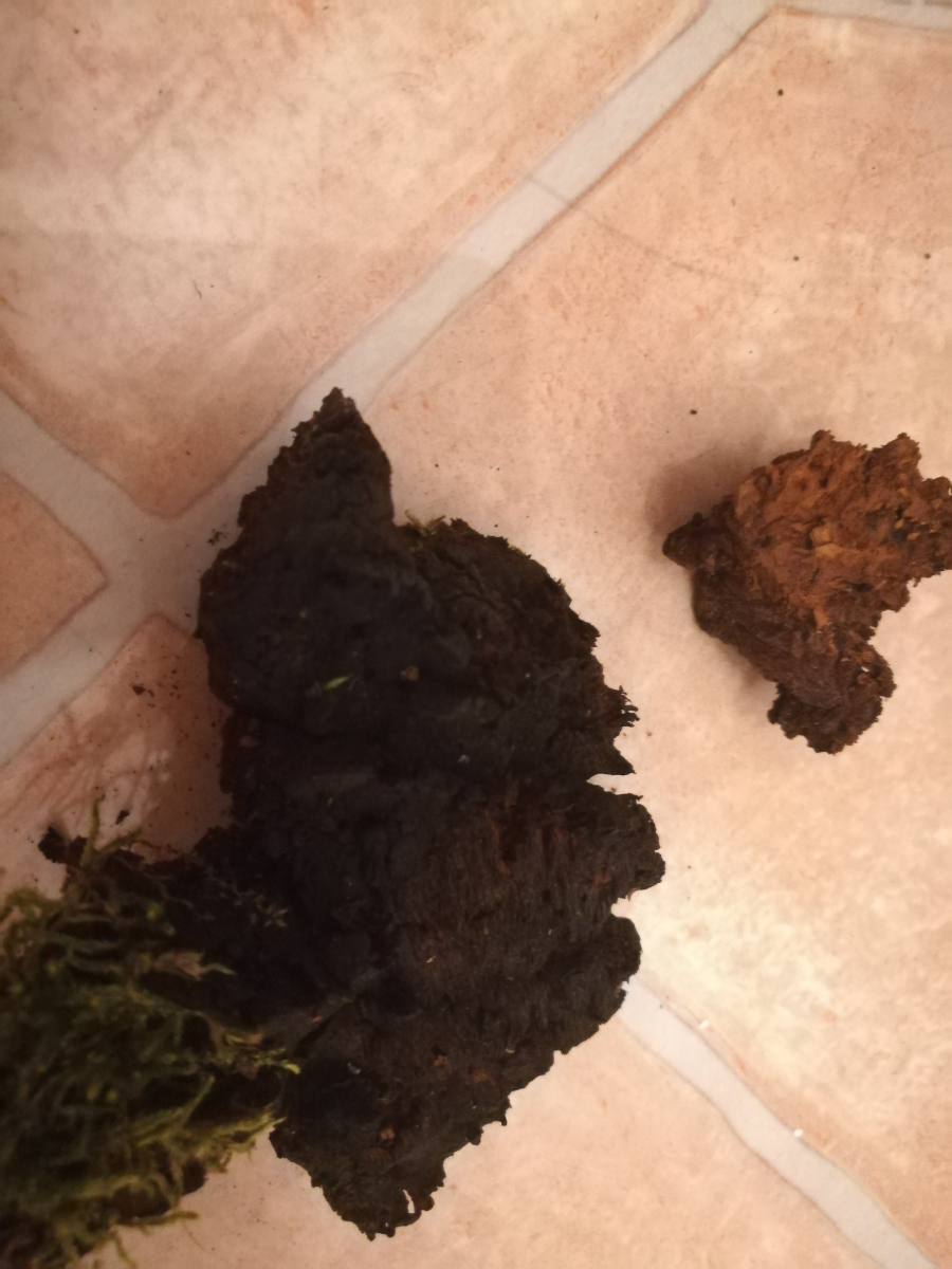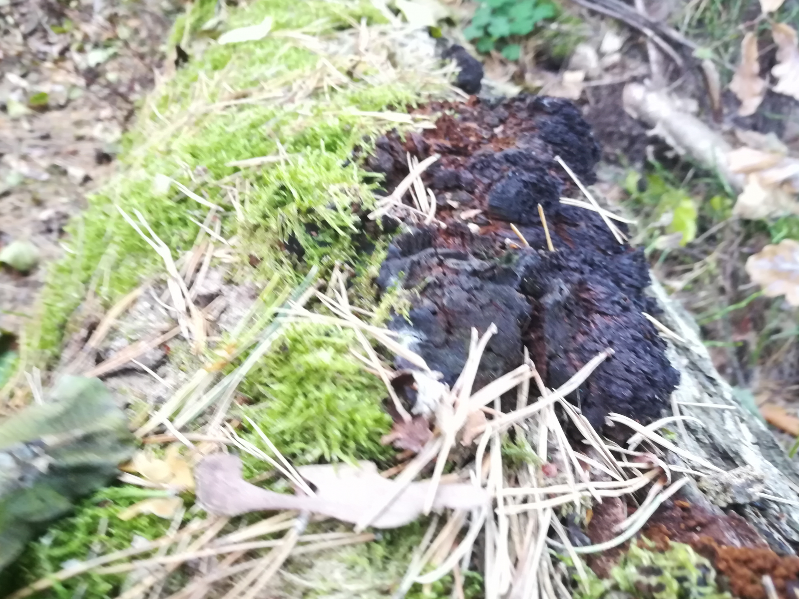 Das sind zwar Schillerporlinge, aber kein Chaga (Inonotus obliquus). Das hier ist eine verfallene, stark verwitterte Hauptfruchtform ("Chaga" ist eine Anamorphe), leider nicht mehr bestimmbar.