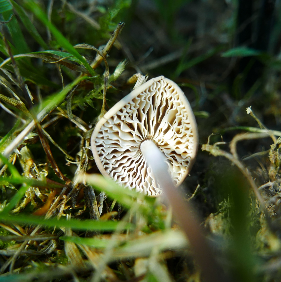 02. Diese kleinen Stinker fand ich auf der Pferdekoppel am Waldrand. Der Knoblauchgeruch war gut wahrnehmbar, haute mich aber nicht so sehr um, wie bei den Exemplaren, die ich normalerweise finde. Knoblauchschwindling, nur welcher? Marasmius sp.