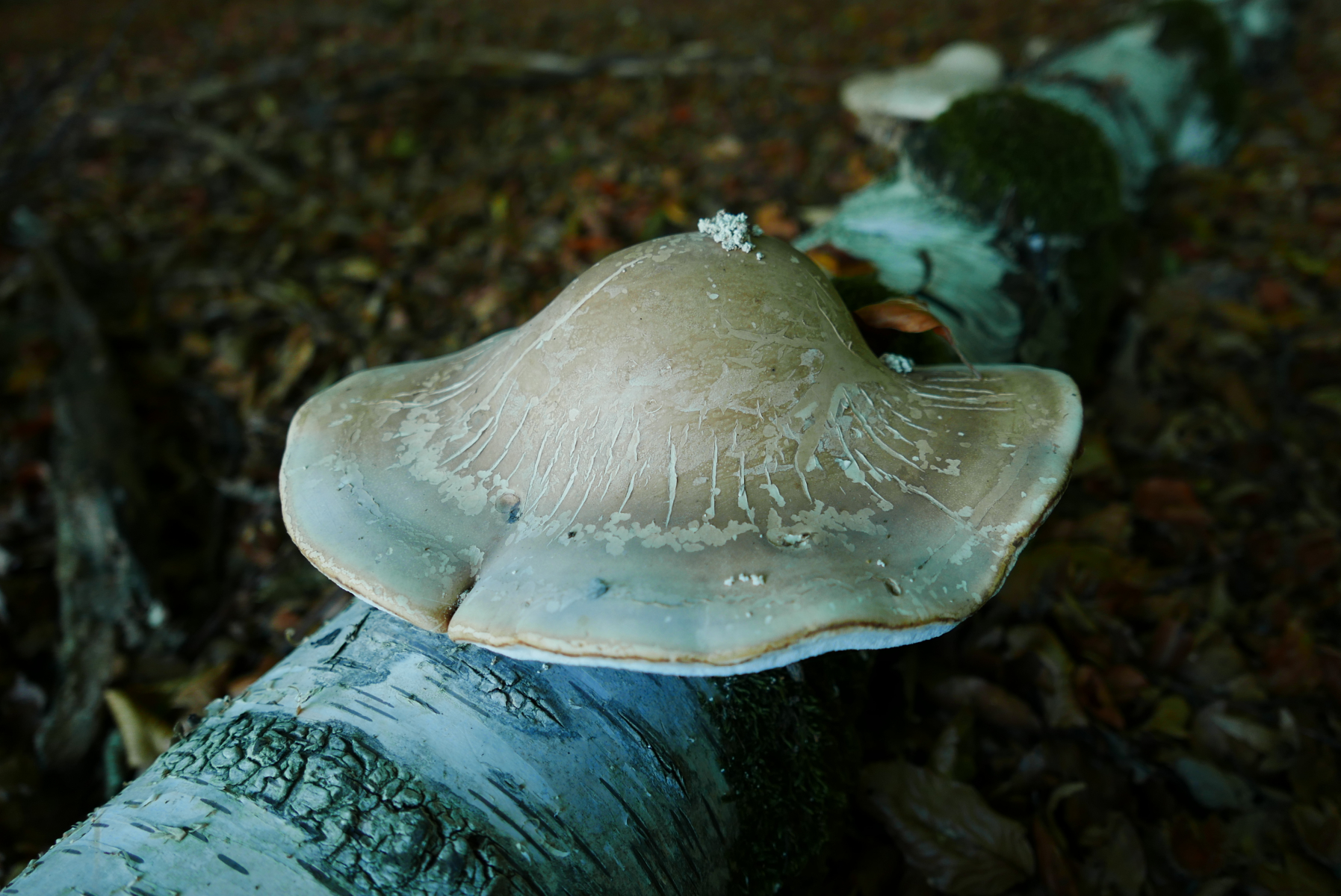 03. Wunderbare (und auch unbewohntere als das gezeigte) Exemplare des Birkenporlings, Piptoporus betulinus wuchsen an diesem liegenden Birkenstamm