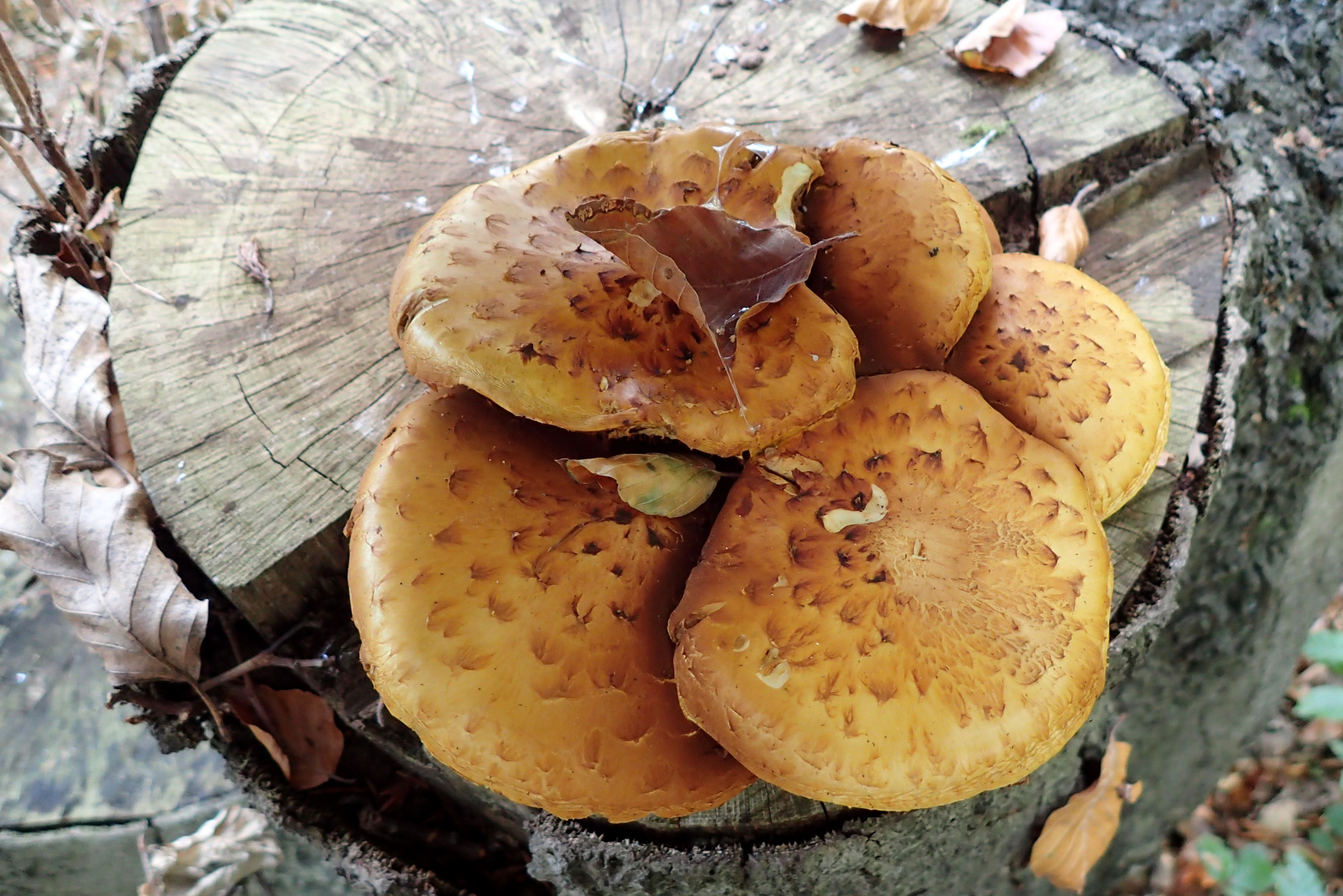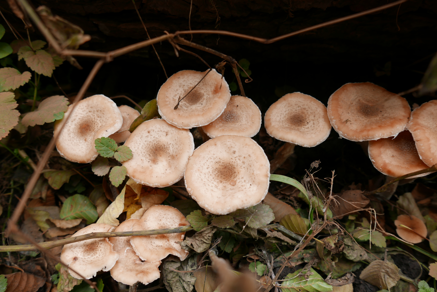 14. Nun zu einer Pilzart, die ich aus Angst vor Verwechslung wohl nie sammeln werde. Ich vermute hier überständige Stockschwämmchen, Kuehneromyces mutabilis, bin aber alles andere als sicher.