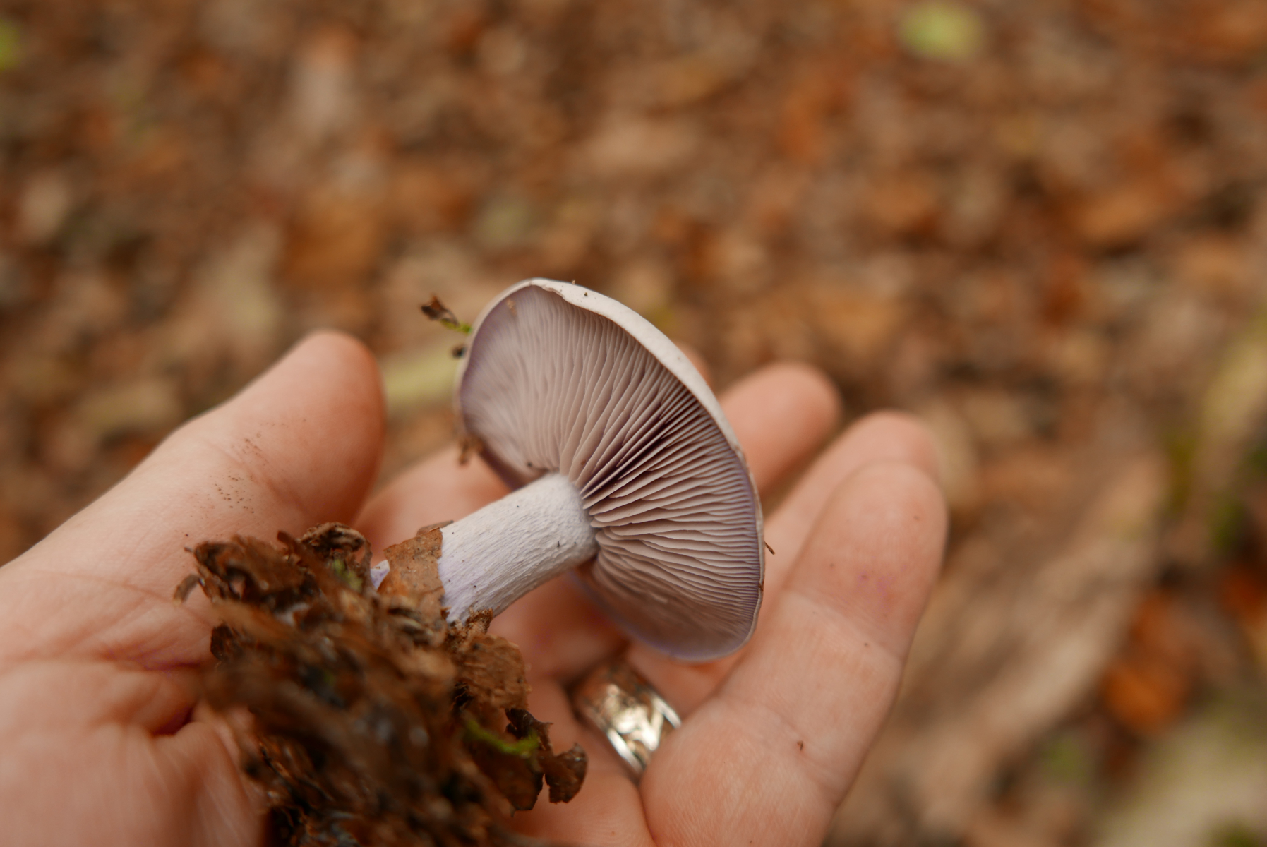 Da stehe ich dann im Wald und denke scharf nach. Wie war die Unterscheidung der Seitlinge noch? Austern, Lungen, Rillstieliger? Ghotverdomme! Dann gehe ich doch - zack - wieder auf die andere Seite, zu einem weiteren liegenden Stück Buchenstamm... da blitzt doch was so stahlblau-weiß in der Sonne?