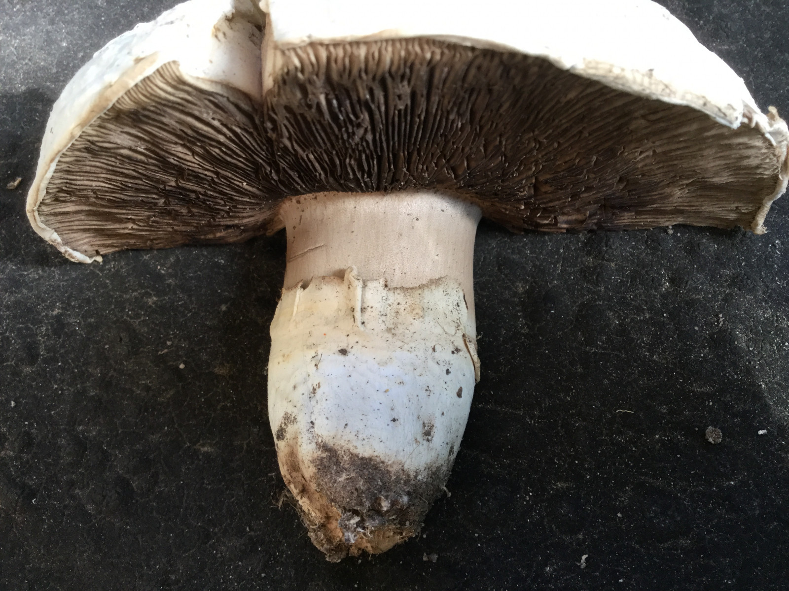 nach langer Zeit bin ich mal wieder im Forum unterwegs und bitte um Bestätigung oder Korrektur meiner eigenen Bestimmung zweier Pilze, die ich gestern (14.10.2018) in Baden-Württemberg, Odenwald, Lampenhain, am Straßenrand am Ortsrand gefunden habe. Liege ich mit Agaricus bernhardii richtig?