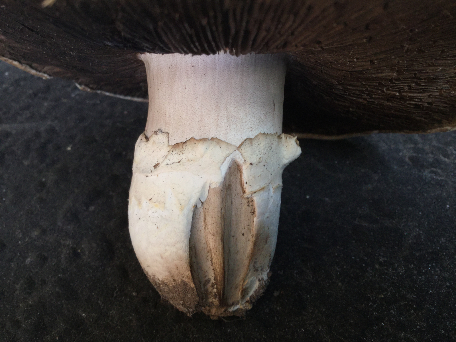 nach langer Zeit bin ich mal wieder im Forum unterwegs und bitte um Bestätigung oder Korrektur meiner eigenen Bestimmung zweier Pilze, die ich gestern (14.10.2018) in Baden-Württemberg, Odenwald, Lampenhain, am Straßenrand am Ortsrand gefunden habe. Liege ich mit Agaricus bernhardii richtig?