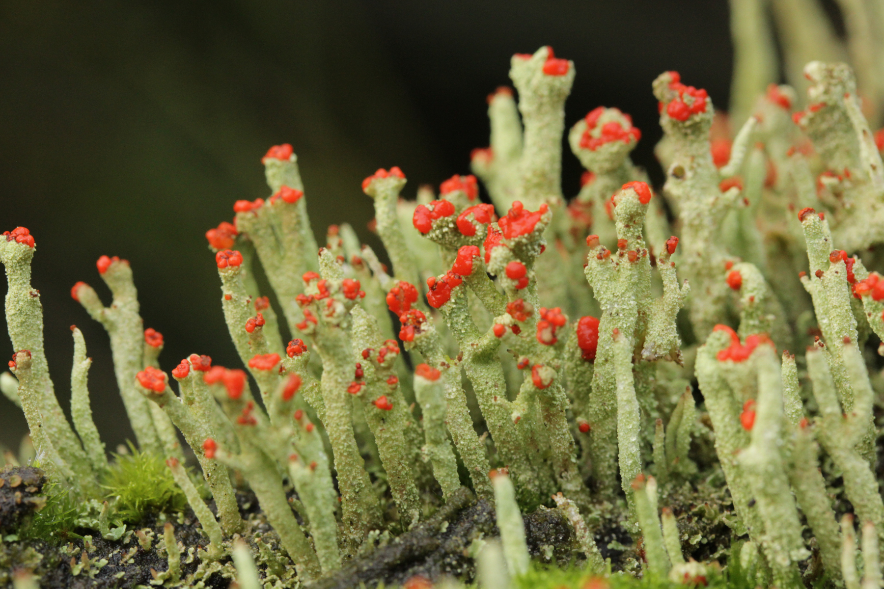 das ist eine Flechte aus der Gattung Cladonia. Für die genauere Bestimmung wären Tüpfeltests mit K, C und P hilfreich.