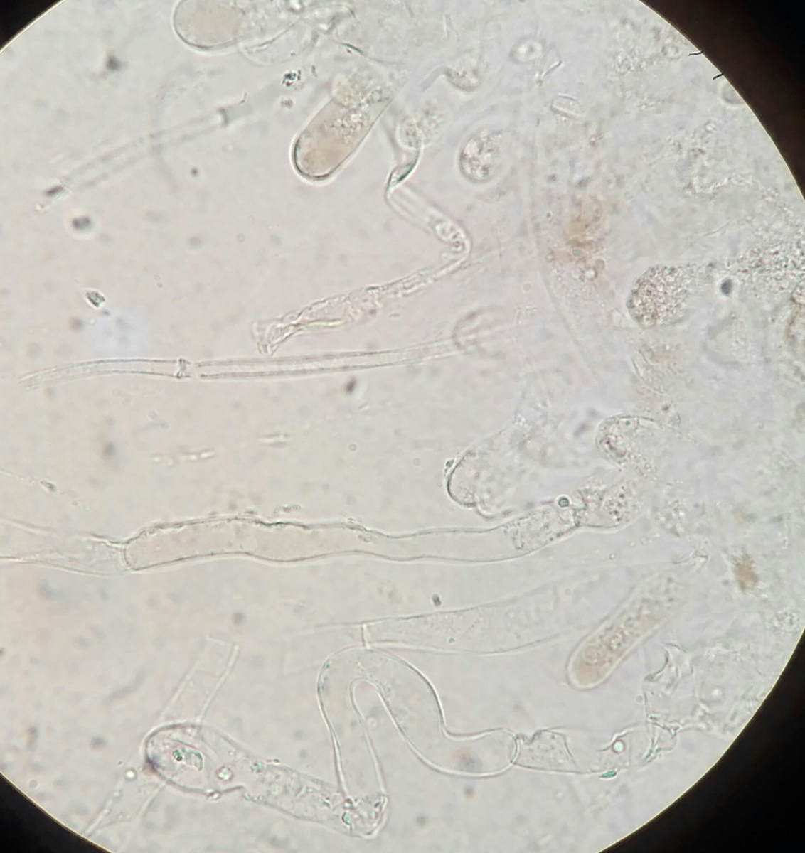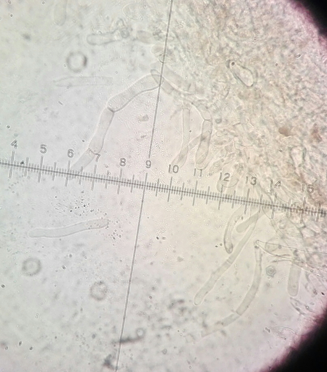 hier nun der dritte mir unbekannte Pilz auf dieser Wiese bzw. an diesem Waldrand. Sie wuchs direkt neben dem Wald im Gras, bei einem Brombeerstrauch. Es waren da auch noch Lärchen und ein unbekannter Laubbaum. Die Pilze haben einen Durchmesser von ca. 5 cm und wirken relativ stabil. Im ersten Moment, so von oben betrachtet, dachte ich an Lyophyllum decastes, was es natürlich nicht ist, aber eine Ähnlichkeit besteht. Der Geruch ist unangenehm, irgendwie staubig-ranzig.