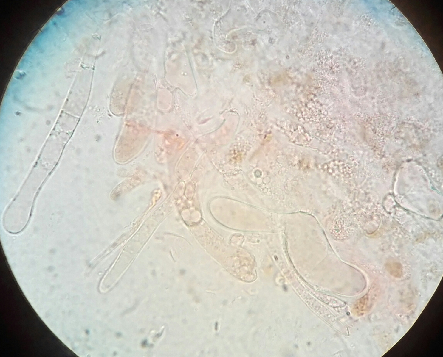 Nicht, dass ich jetzt einen belastbaren Bestimmungs-Tipp hätte. Vielmehr geht es jetzt mit Cheilozystiden und Schnallen in die nächste Mikroskopier-Runde.