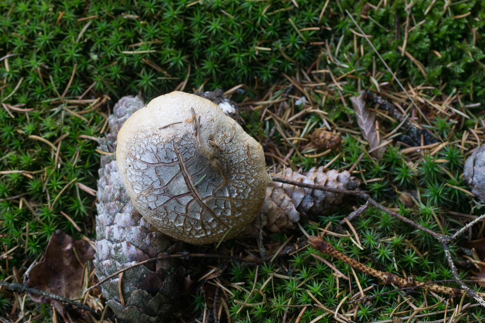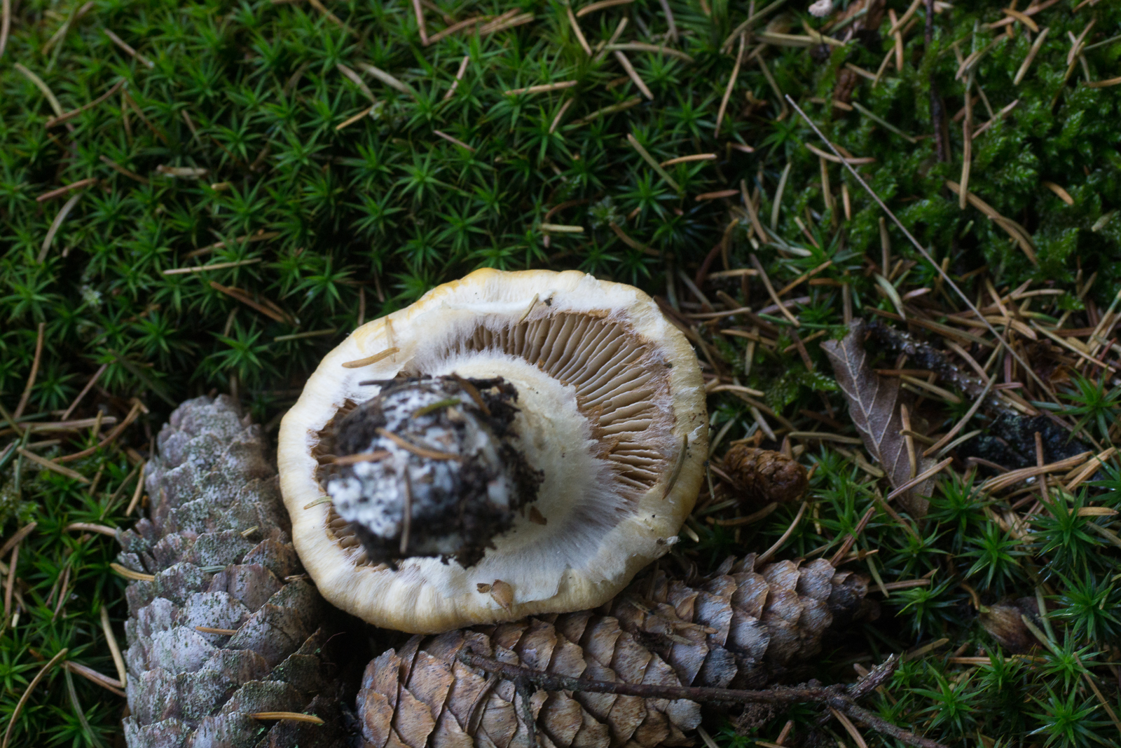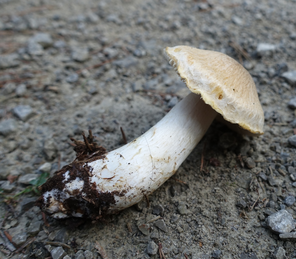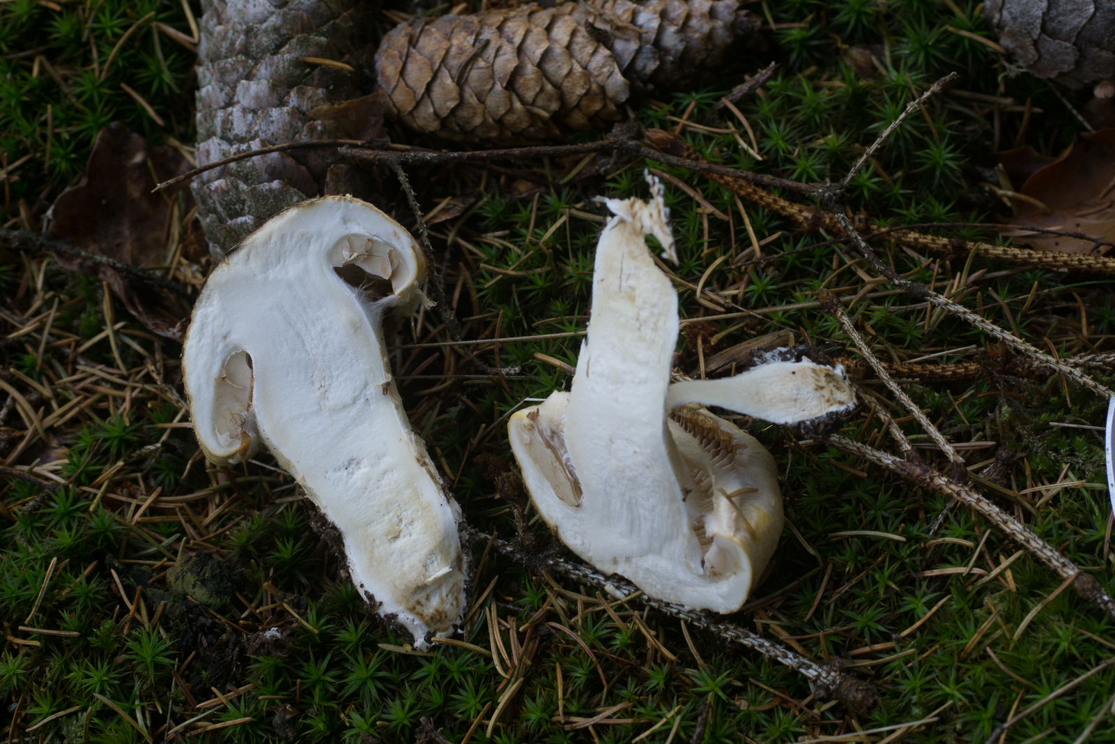 Fundort ist vermutlich der selbe wie in diesem Threas von Schupfnudel. Der ganze Habitus schreit nach Cortinarius, aber mit diesen derart hellen Lamellen? Ich war erst mal etwas ratlos. Leider war (einzige) Exemplar noch zu frisch, keinerlei Spp-Abwurf über Nacht. Und auch kein Spp welches sich in der ev. vorhandenen Gespinst am Stiel hätte verfangen können.