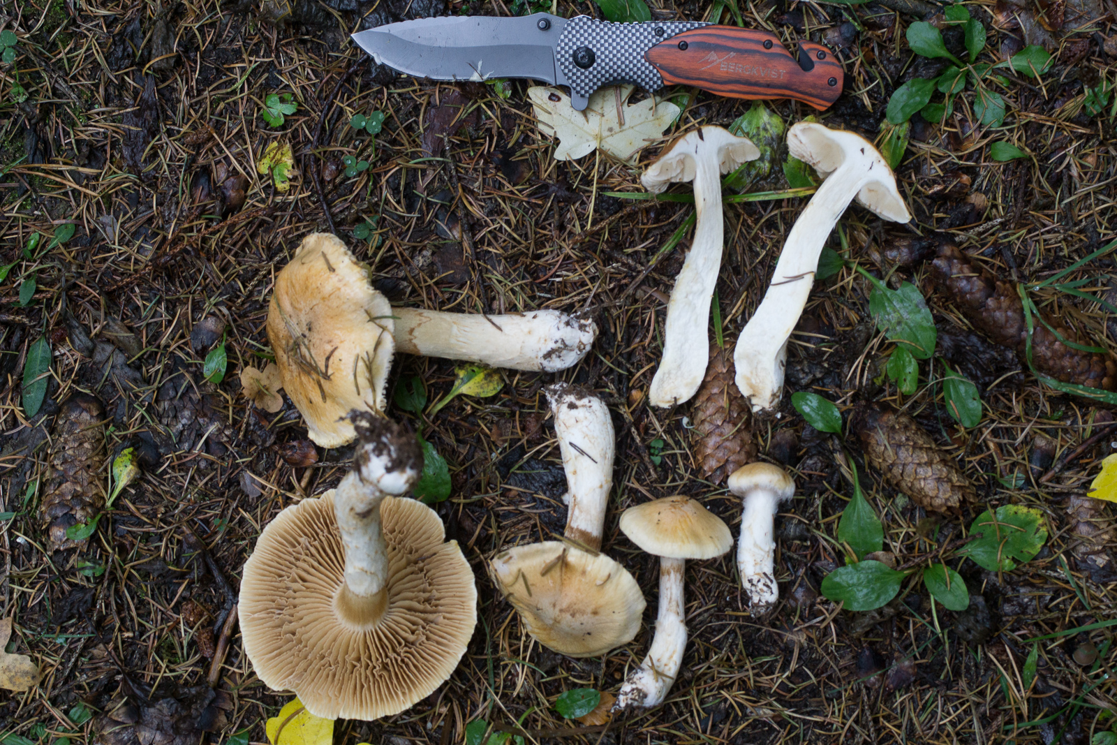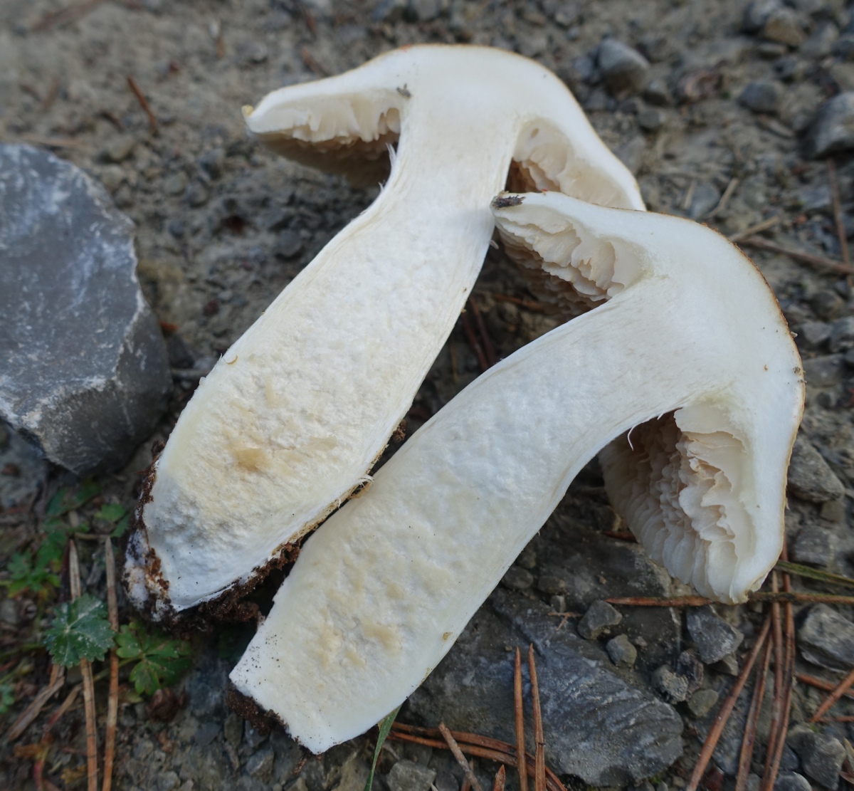 Fundort ist vermutlich der selbe wie in diesem Threas von Schupfnudel. Der ganze Habitus schreit nach Cortinarius, aber mit diesen derart hellen Lamellen? Ich war erst mal etwas ratlos. Leider war (einzige) Exemplar noch zu frisch, keinerlei Spp-Abwurf über Nacht. Und auch kein Spp welches sich in der ev. vorhandenen Gespinst am Stiel hätte verfangen können.