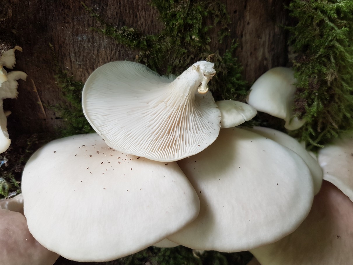 Mir fällt hierzu nur der Lungenseitling (PLEUROTUS PULMONARIUS) ein. Ein besonderer Geruch ist mir nicht aufgefallen.