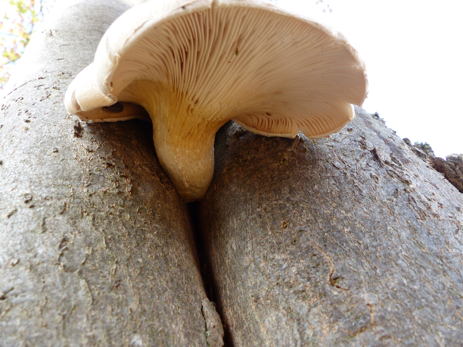 Wir waren schon auf dem Heimweg, als ich an einem Ahorn diesen Seitling sah. Ist das überhaupt einer?