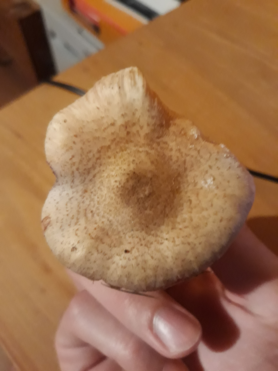Diesen Pilz habe ich heute vermehrt angetroffen. Ich vermute, es handelt sich um einen Waldchampignon, bin mir aber keineswegs sicher. Was mich verunsichert ist das leicht gelblich gefärbte Stielende, was in gewissen Foren als Indiz für einen Giftpilz gilt. Der Pilz ist wohlriechend (Champignon halt) und auch beim Einschneiden am Stielende riecht es keineswegs nach Karbol, sondern dern wohlige Geruch prävaliert. Der Pilz wuchs auf tannigem Boden und meist in unmittelbarer Nähe von Totholz.