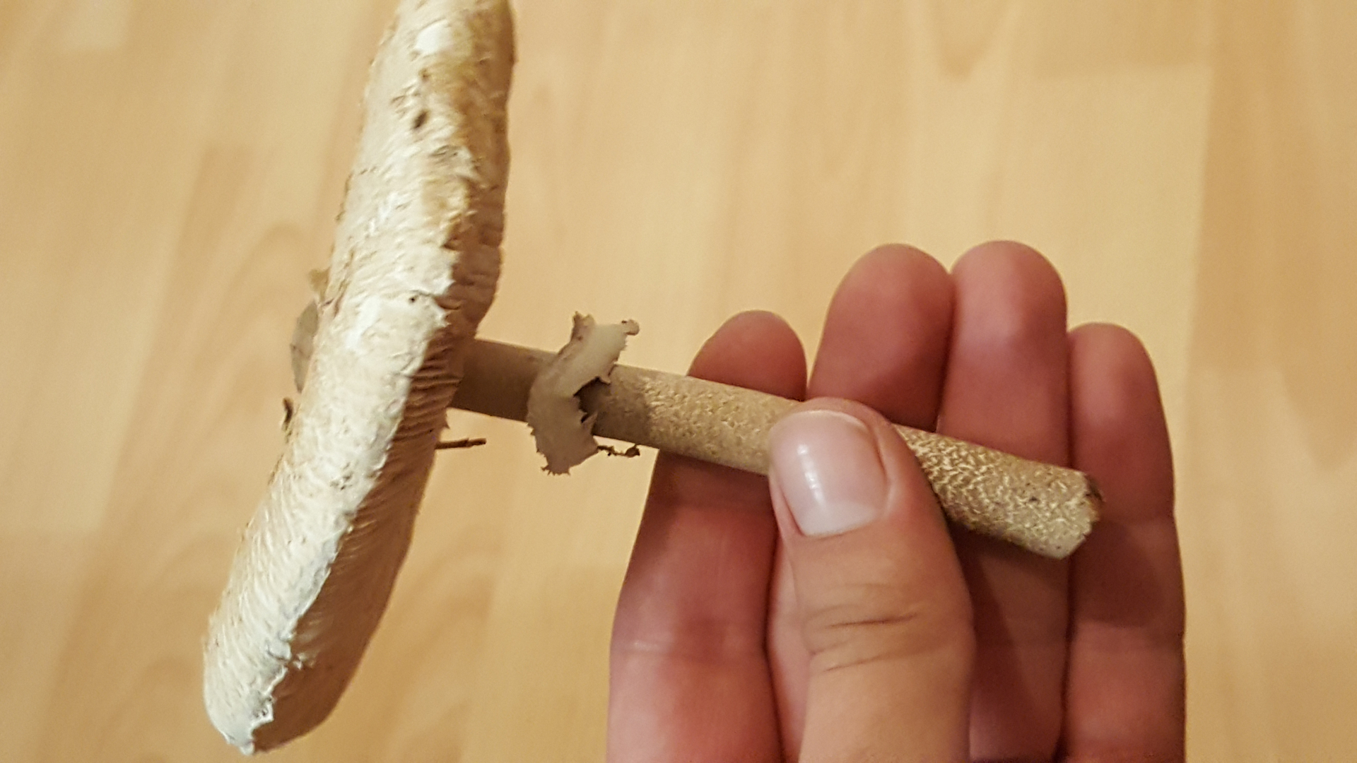 Mich würde interessieren, ob ihr in diesem Jahr auch so ungewöhlich kleine Exemplare des Parasols findet? Die Merkmale stimmen: Genatterter Stiel, doppelter Ring, weißes, sich nicht verfärbendes Fleisch...