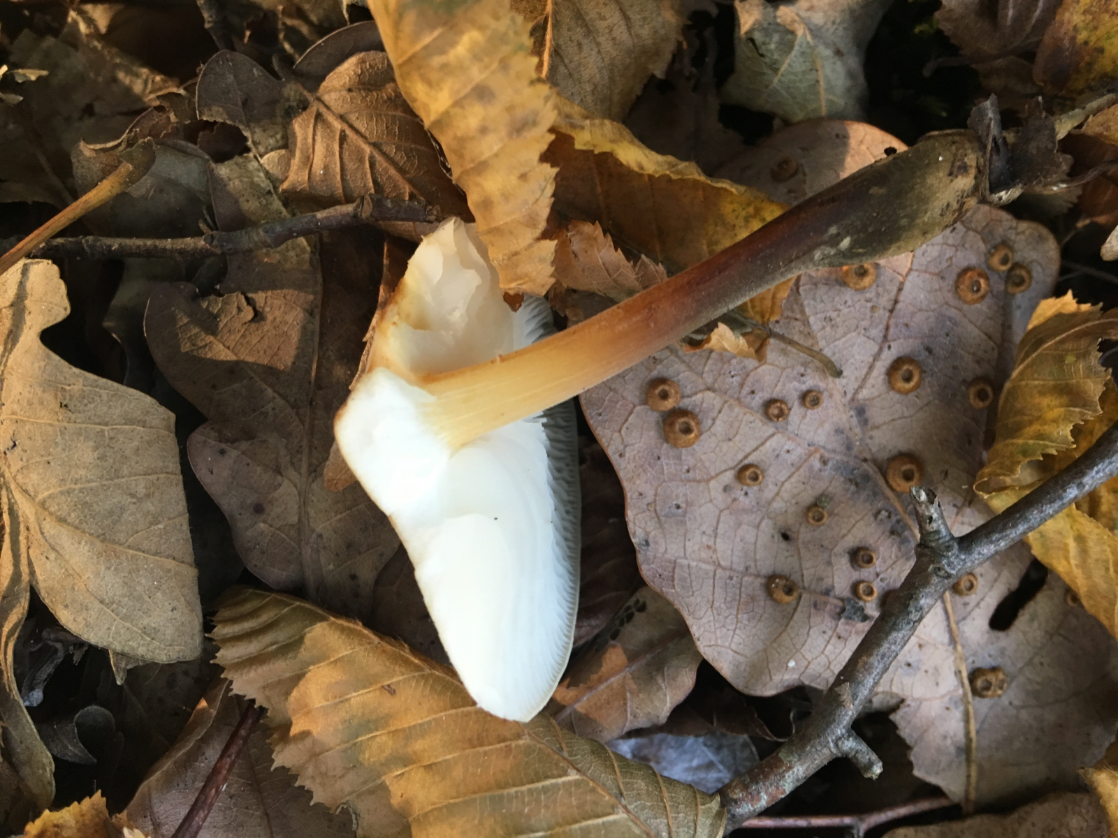 Der komische blasse Wurzelrübling (Gattung: Xerula) ist aber eben eine Xerula. Welche Art der Gattung da so aussehen kann, müsste ich jetzt nachgucken, aber vielleicht hat's ja jemand anderes im Ärmel?