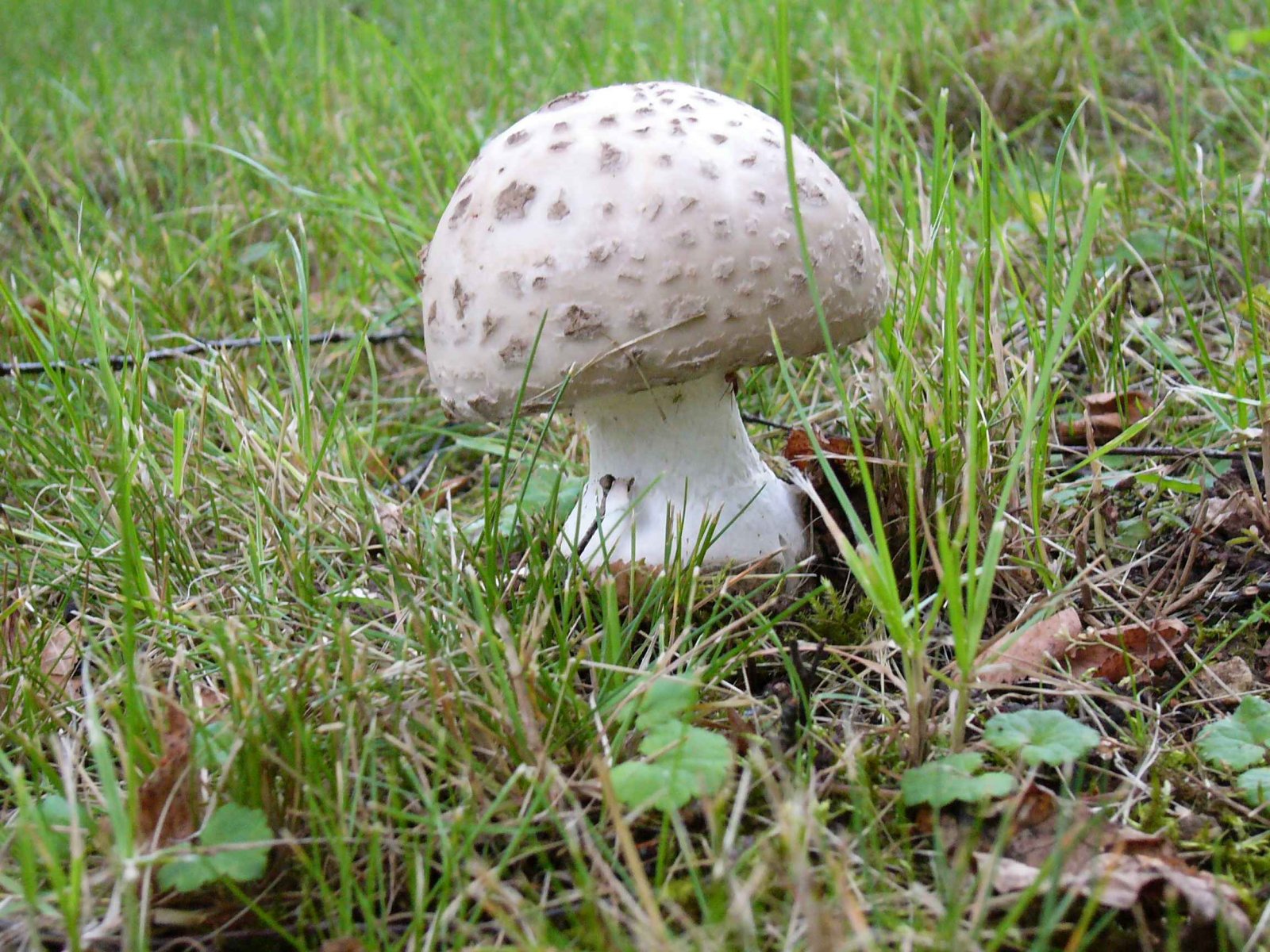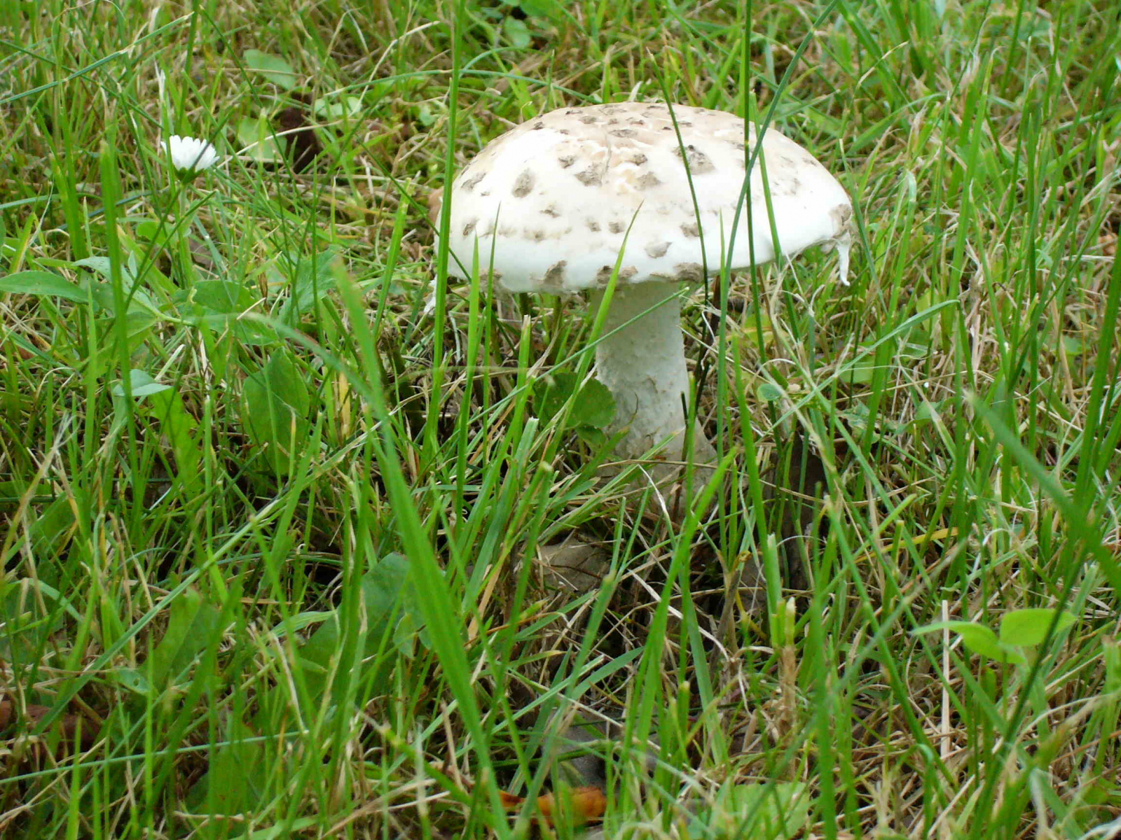 Wer kann mir etwas zu den hier abgebildeten Pilzen mitteilen? In meiner 60jährigen Sammeltätigkeit sind mir derartige Formen noch nicht begegnet. Bei der Bestimmung nach Pareys Buch und BLV-Pilzführer bin ich bei den Schirmlingen gelandet, doch im weiteren blieb ich stecken. Der Pilzhut ist bei ausgewachsenen Exemplaren fast 20 cm breit, und der weiße Stiel besitzt eine dicke Knolle. Die Sporenfarbe ist weiß. Da ein Velum fehlt ist eine Amanita wohl auszuschließen.