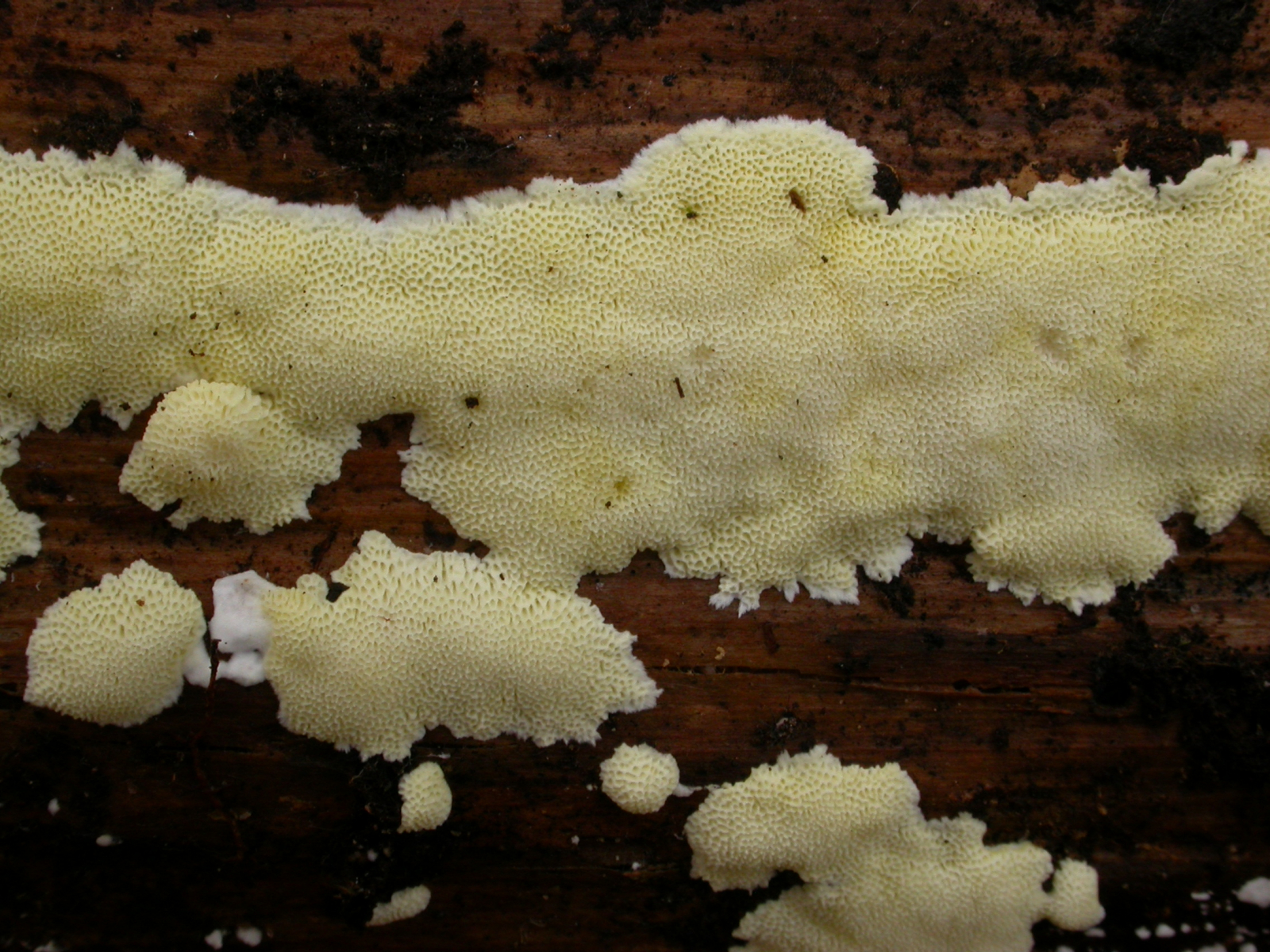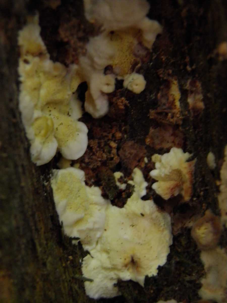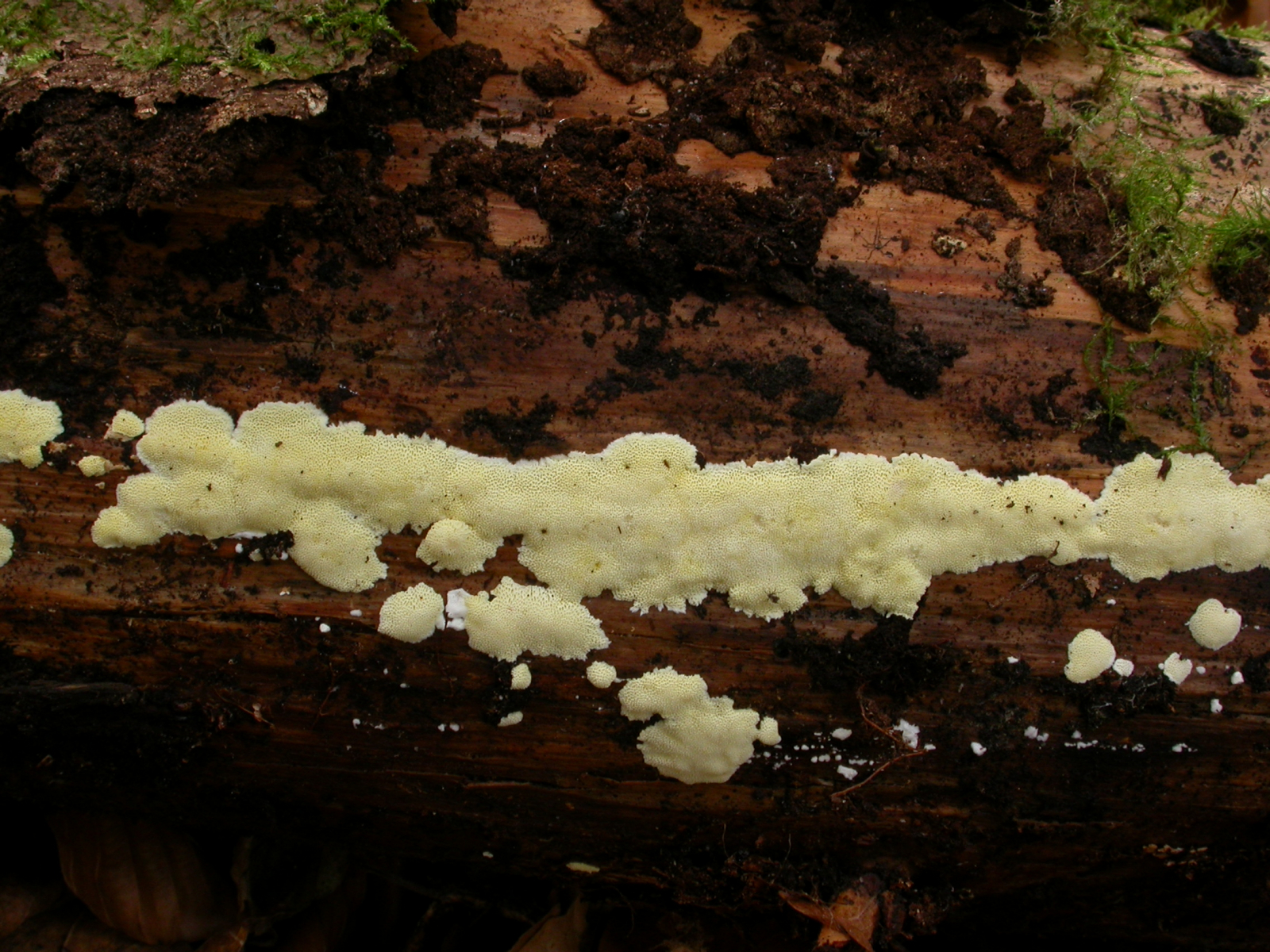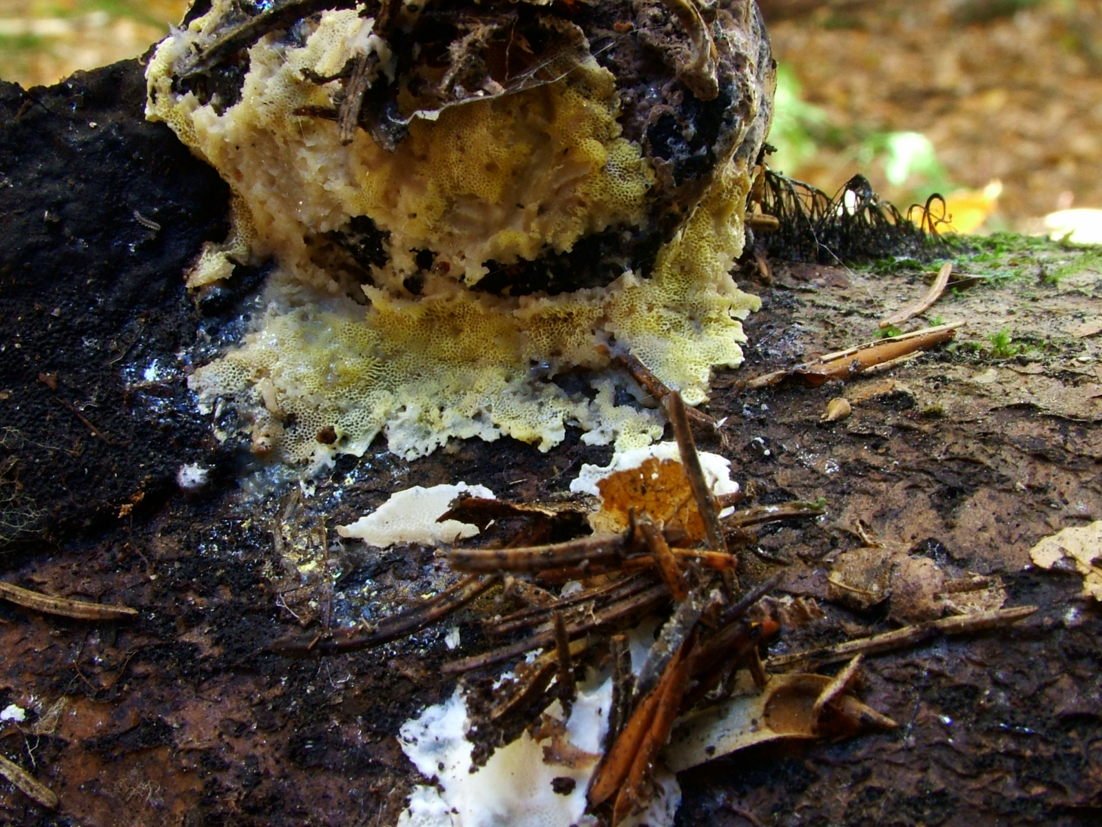 Gefreut hab ich mich heute über einen erneuten Fund von Antrodiella citrinella. Heuer im Februar hab ich sie auf den gleichen Fichtenstümpfen schon einmal gefunden (von Pablo mirkoskopisch bestimmt), jetzt im Oktober gibt es schon wieder neue Fruchtkörper.