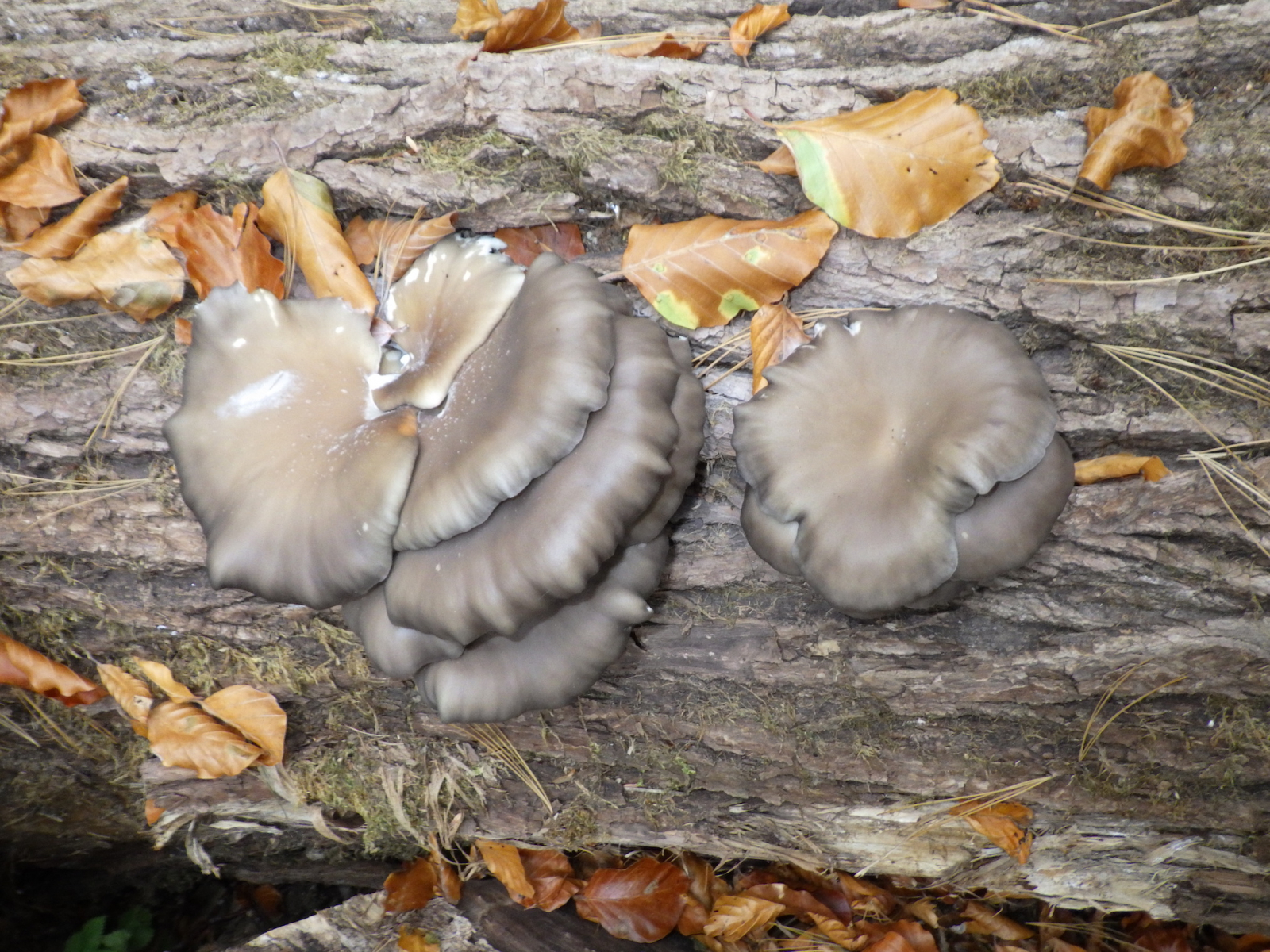 Diese graubraunen Seitlinge habe ich heute im Wald in Hägglingen CH 550m auf einer Holzbeige entdeckt, ich dachte sofort an Austernseitlinge, bin mir aber nicht 100% sicher, da die Farbe eher grau erscheint und die Hutränder wellig eingerollt sind.