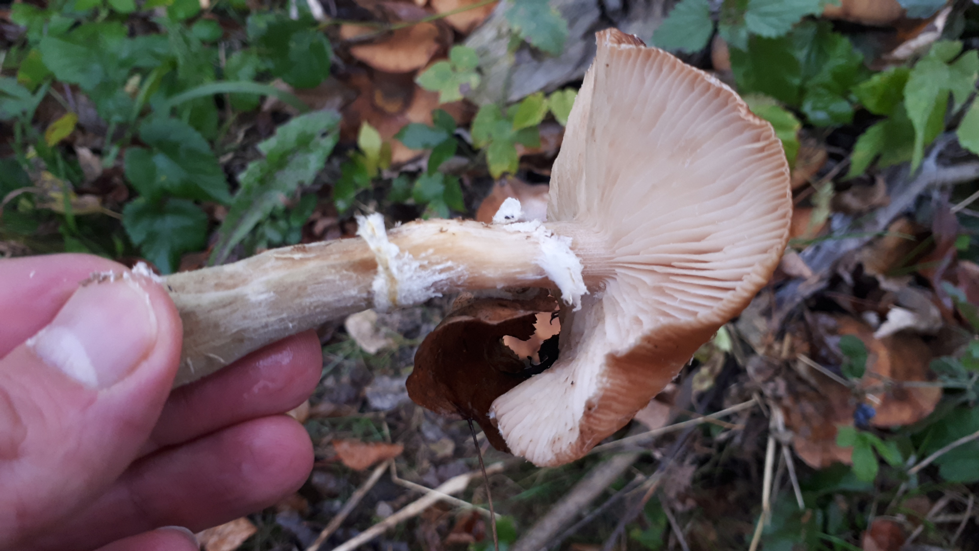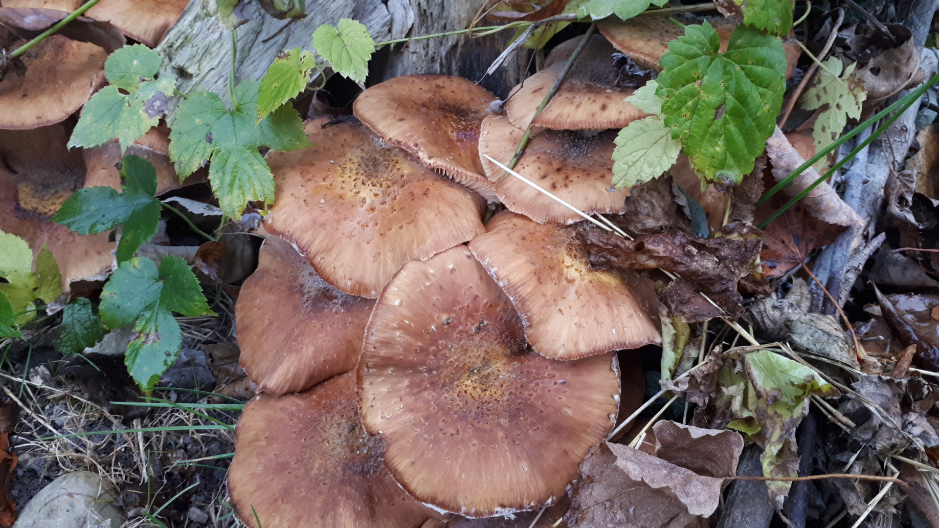Ich tippe auf den Gemeinen Hallimasch trotz golgelber Färbung am Stil. Das macht ihn nicht gleich zum Honiggelben Hallimasch. Was denkt Ihr?