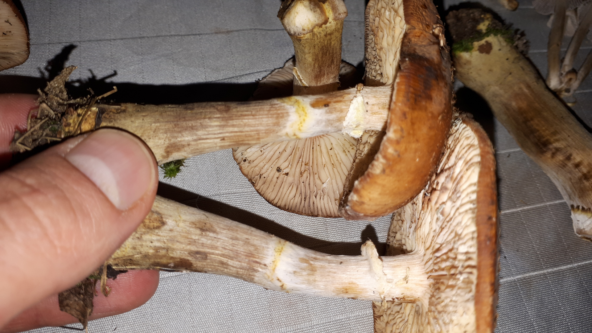 Der Dunkle (ostoyae) hat aber nicht diese gelben Ringzonen am Stiel, scheidet also aus.