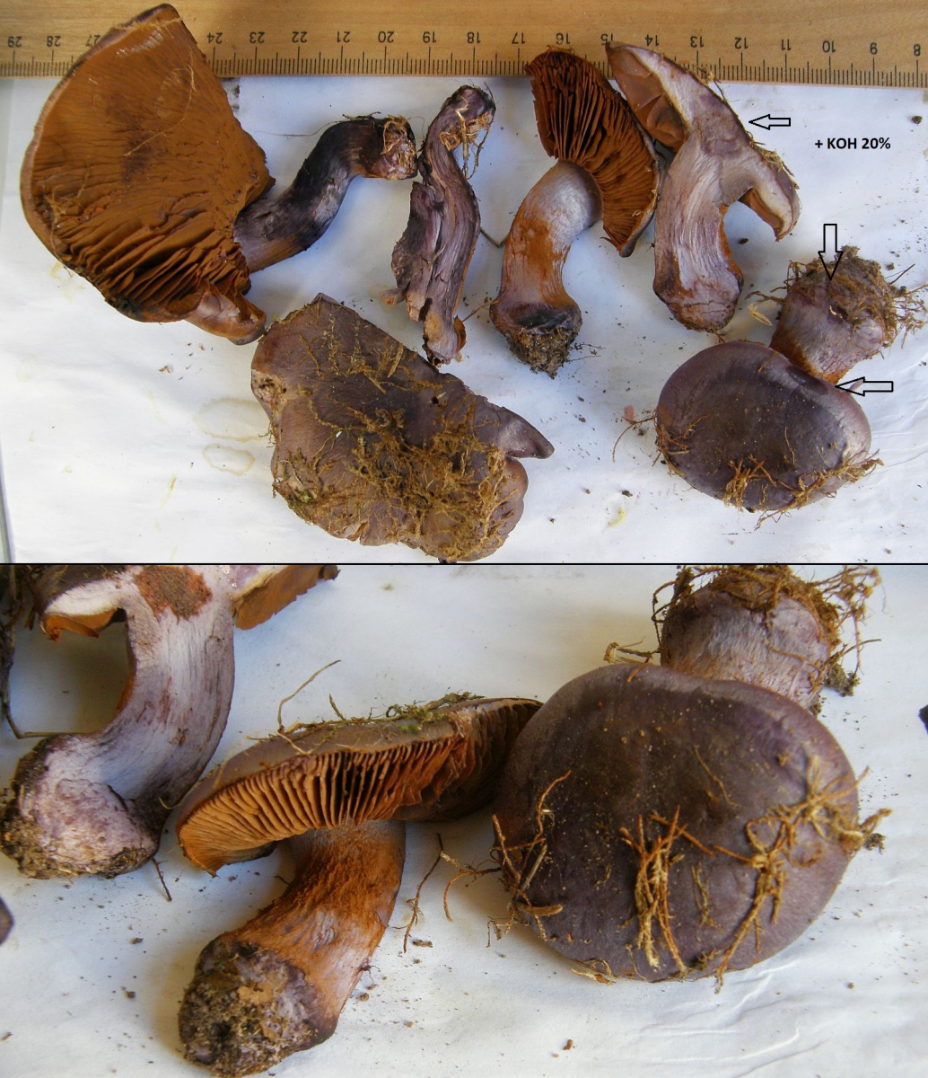 Die zweite Kollektion stand nicht unweit der oben gezeigten Kollektion von Cortinarius cf. purpurascens.