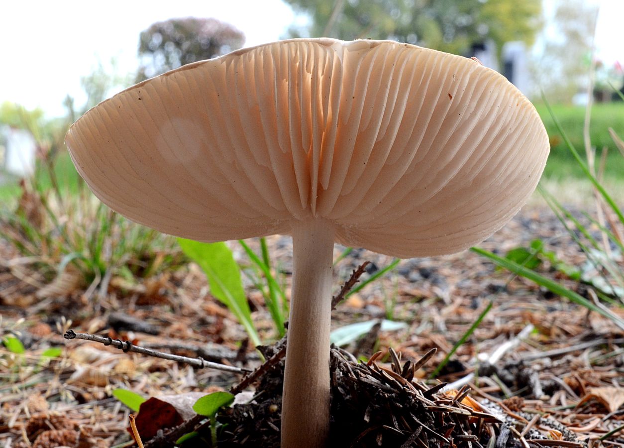 Allerdings mit dunklen Lamellen, also keine Hallimasche.