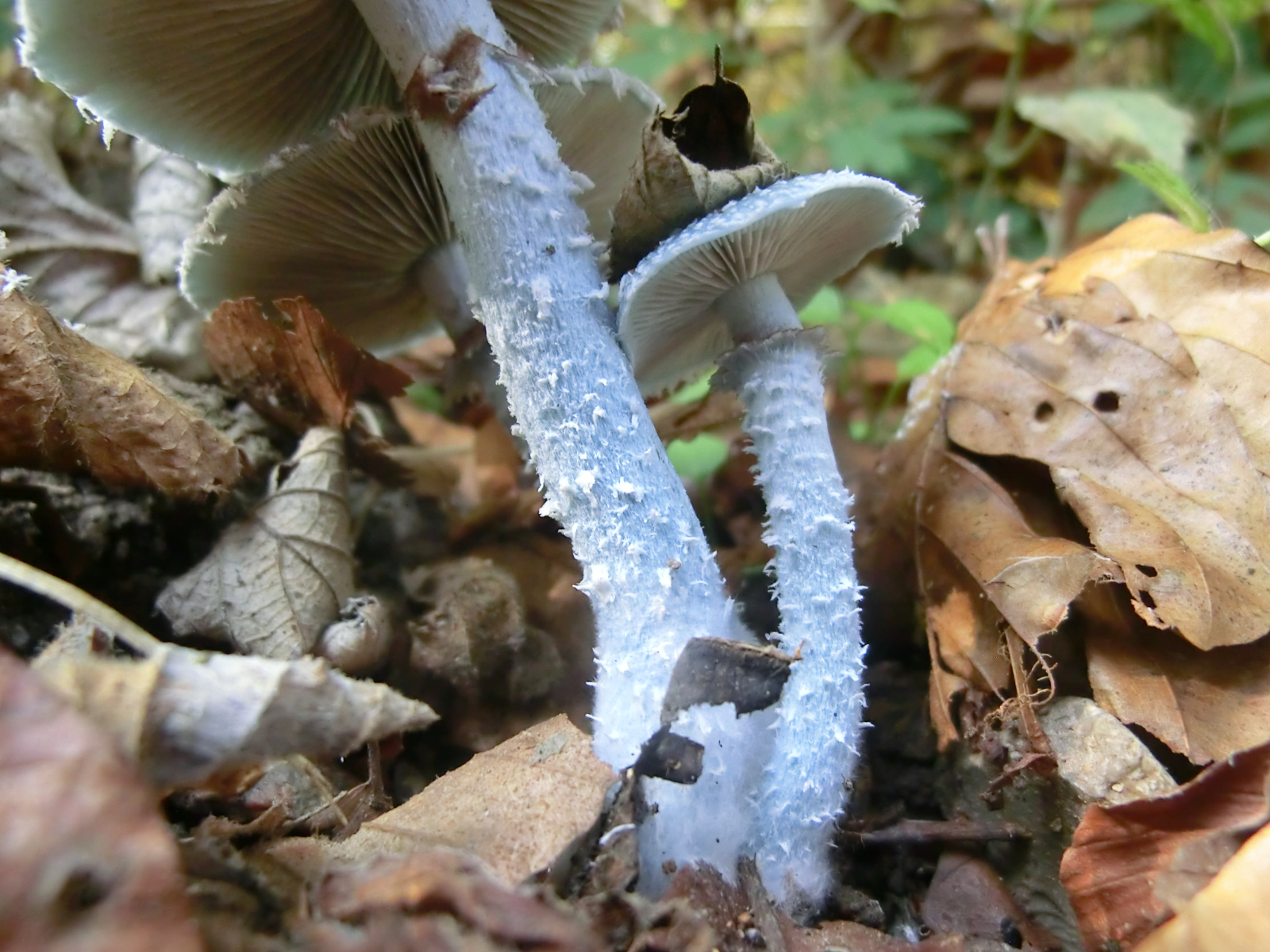 Am Wegesrand fand ich zu meiner Freude ein paar gesellige grünblaue Träuschlinge (Stropharia caerulea). Die finde ich einfach nur sehr schön!