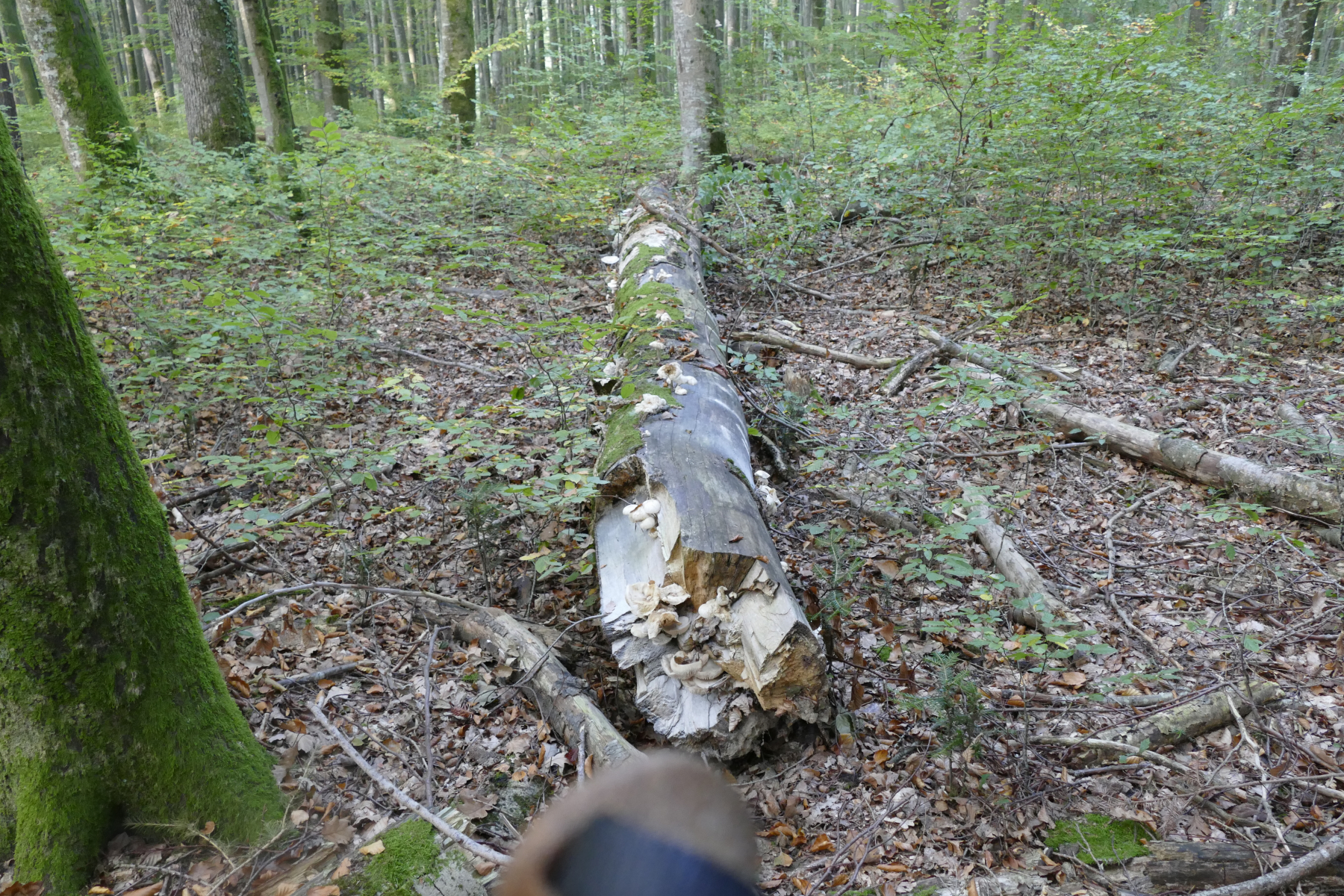 Am Tag zuvor in einem anderen Wald - keine Hallimasche aber sehr viele junge und alte Buchenschleimrüblinge (Oudemansiella mucida). So groß und in diesen Mengen habe ich sie die letzten Jahre nicht wahrgenommen.