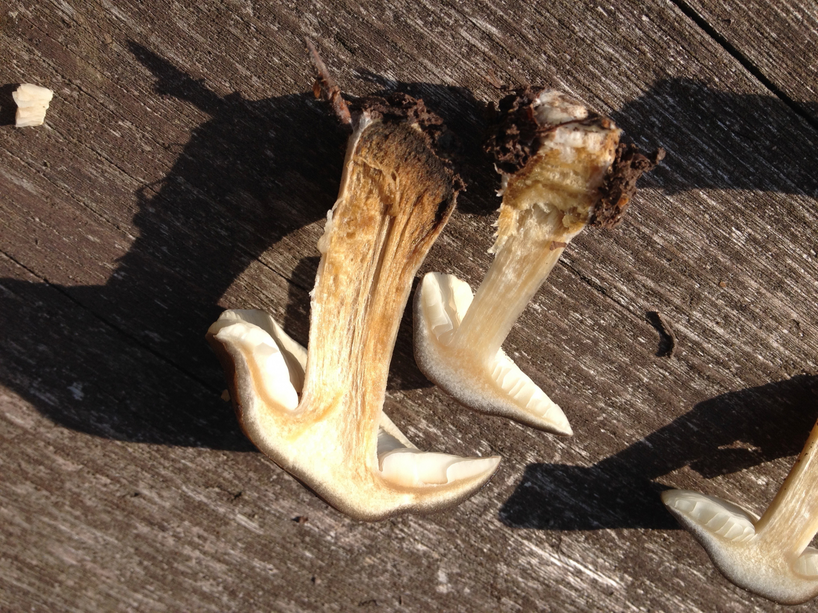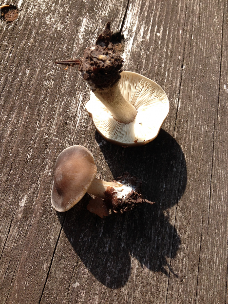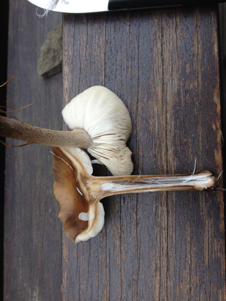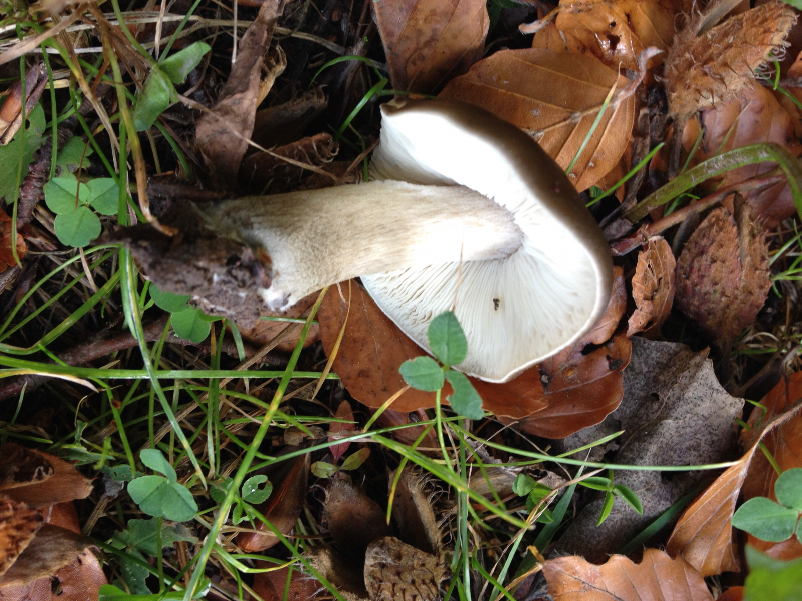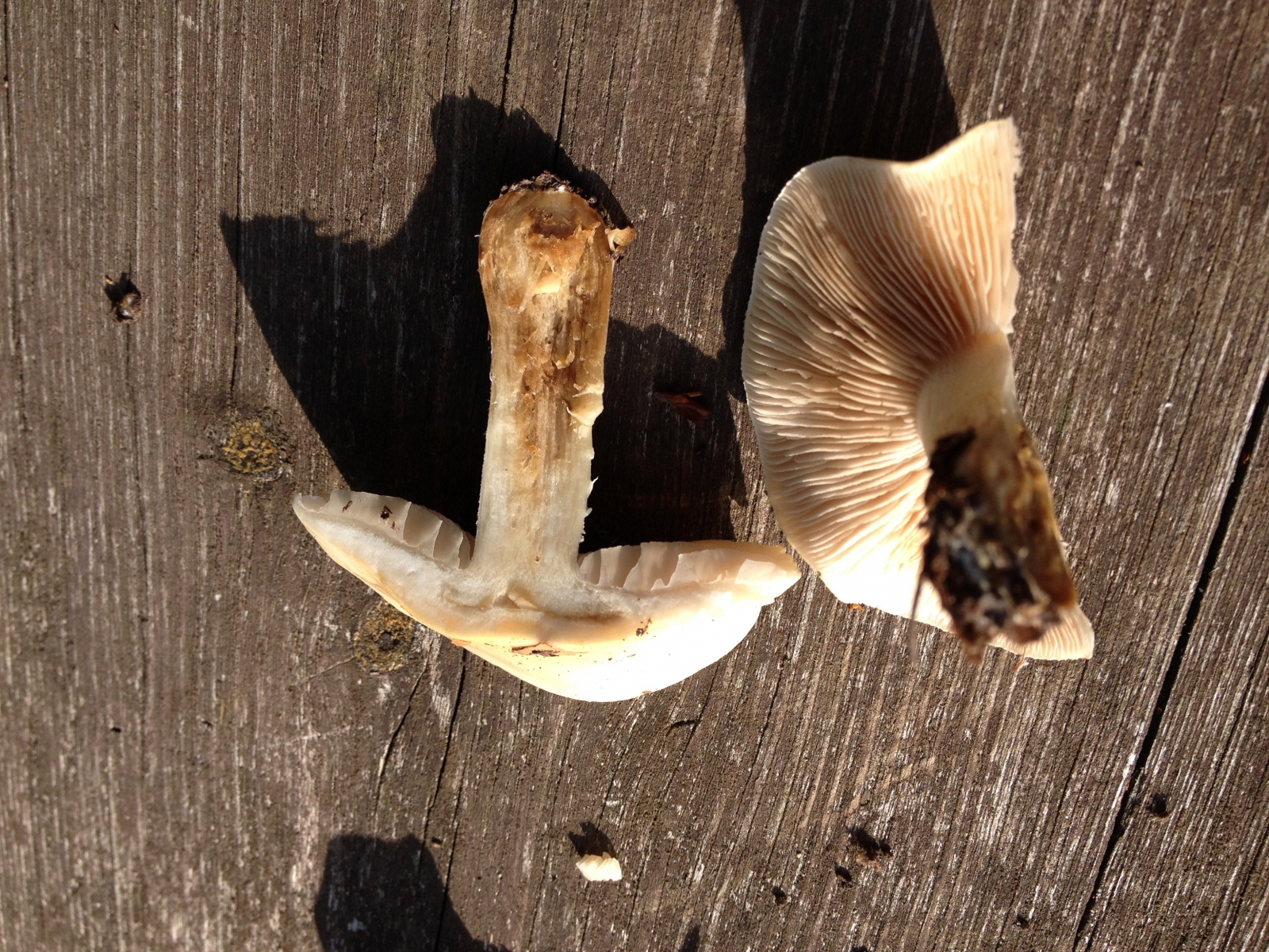Der gestrige war viel älter und etwas größer als die zuvor. Er hat 6 cm Hutdurchmesser. Die Merkmale stimmen insoweit mit denen des Wegrand-Weichritterlings überein. Im Jugendstadium finde ich den Stiel ziemlich dick für den Wegrand-Weichritterling, aber ich habe keinerlei Erfahrung mit der Art. Außerdem ist der Stiel nicht markig, sondern hohl. Könnte dem Alter geschuldet sein. Die jüngeren Pilze sehen im Schnitt anders aus. Das Bräunen des Fleischs im Stiel und unter den Lamellen ist auffällig. Der Geschmack ist altersbedingt nicht so toll, aber mild, einen Geruch kann ich nicht wahrnehmen. Aber seht selbst. Ich bin gespannt auf Eure Meinung.