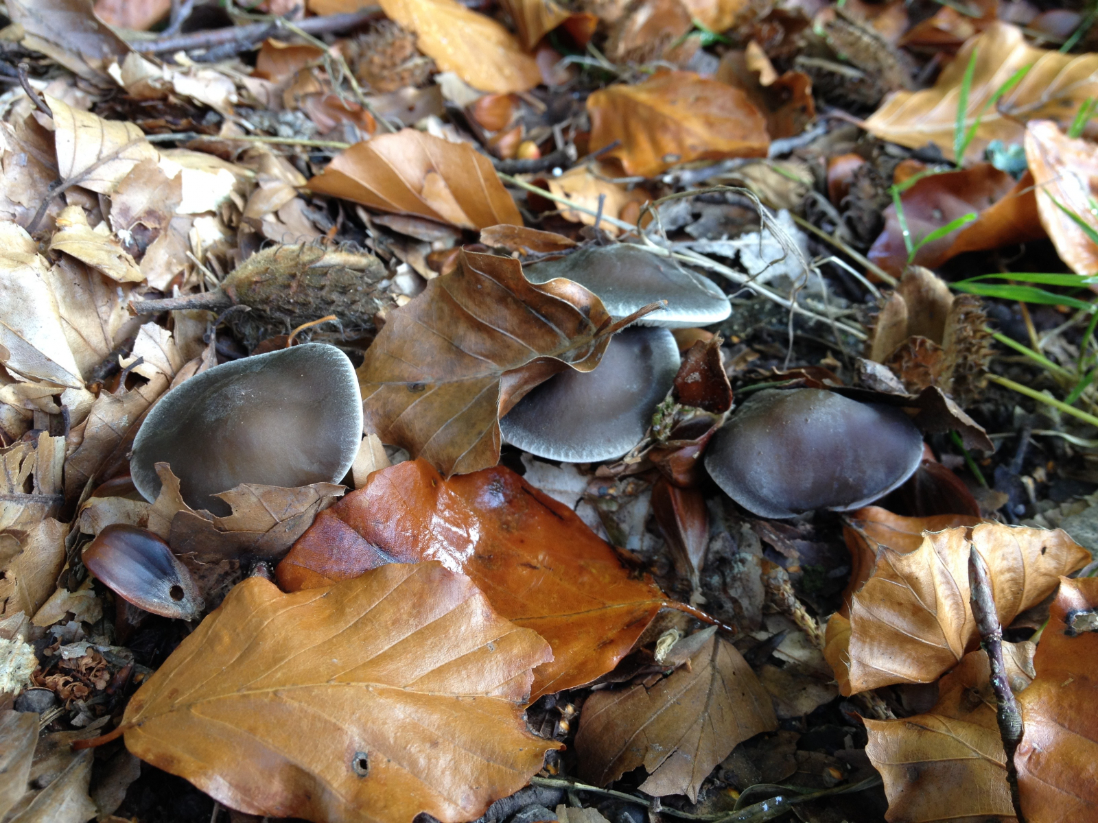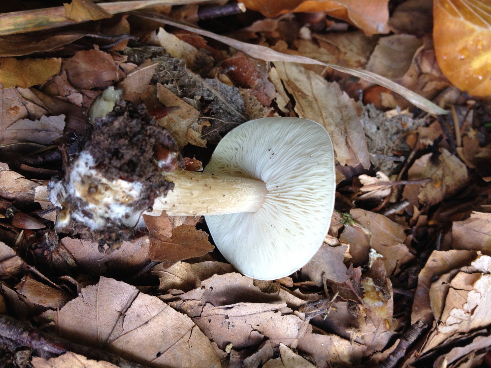 Gestern habe ich an der Fundstelle noch einmal jedes Blatt umgedreht und wurde fündig. Der Pilz sieht zwar nicht mehr so toll aus, könnte aber ein Überlebender der Pilzgeschwister sein.