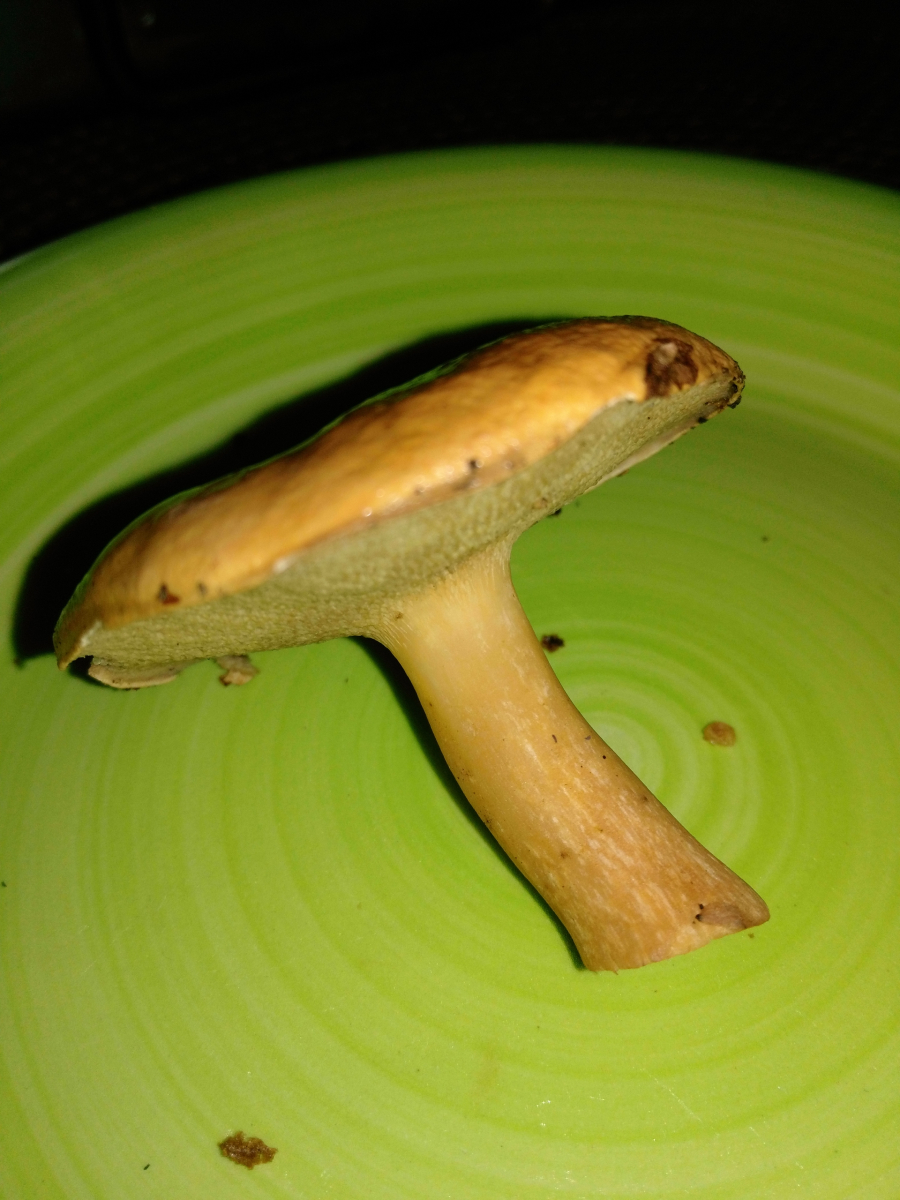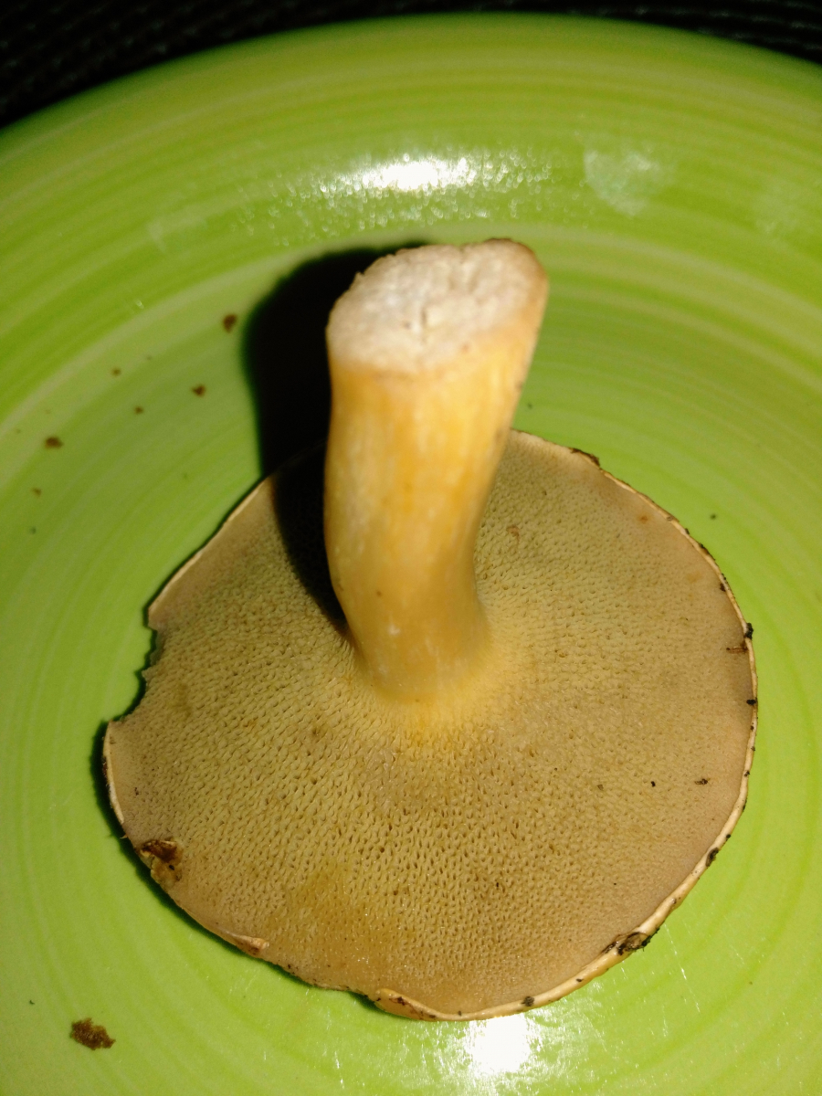 ich sehe einen Kuhröhrling. Nicht wundern, er wird im Topf rosa.