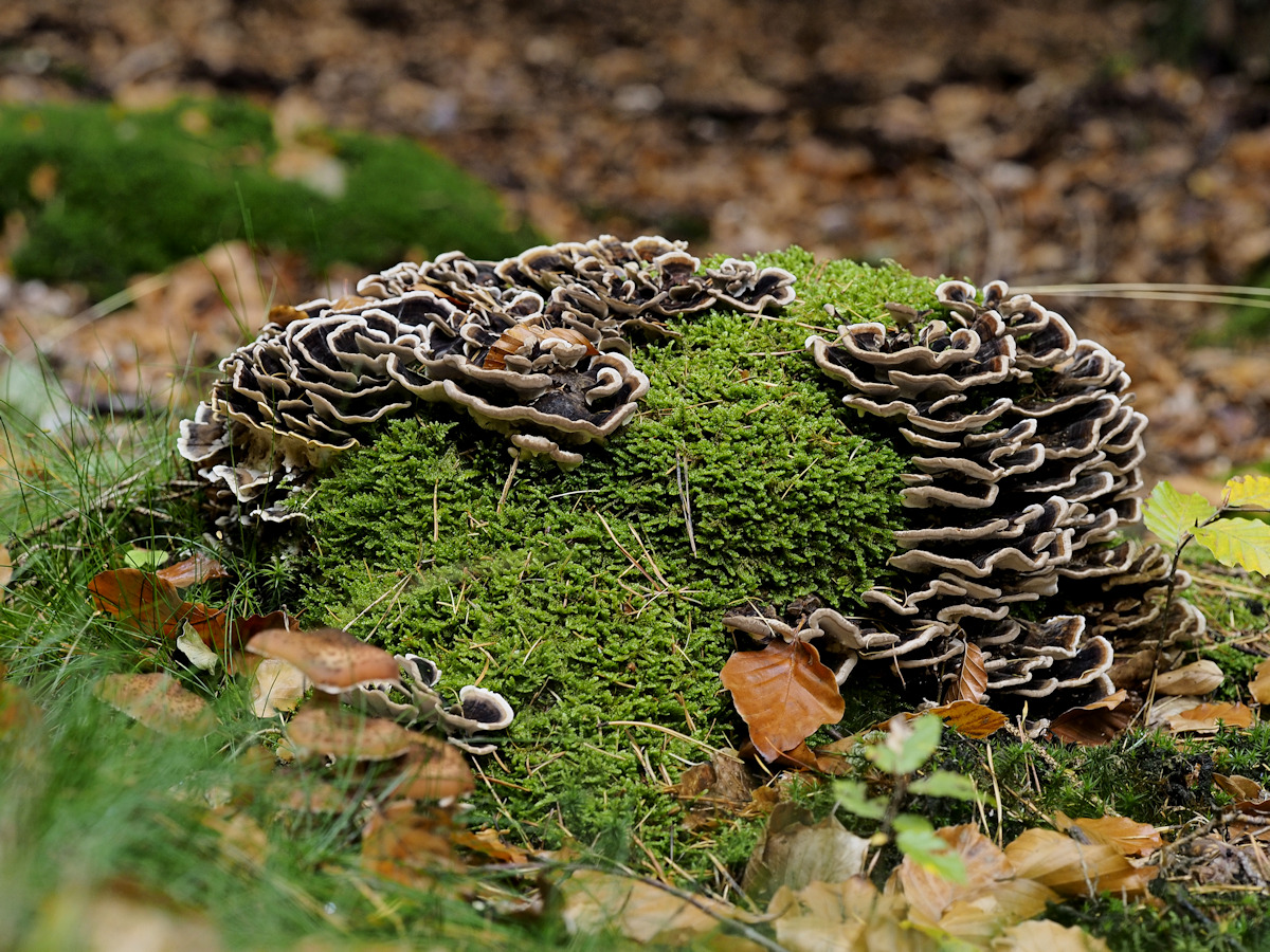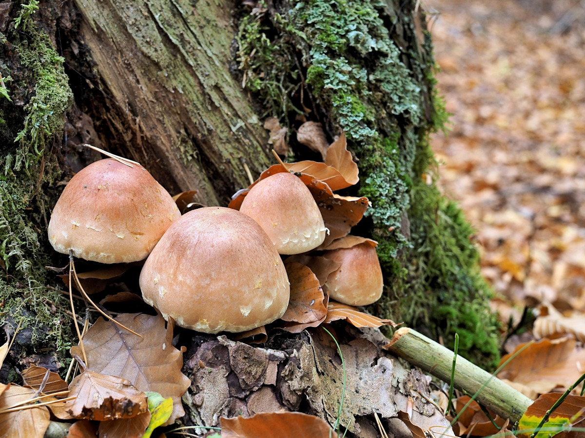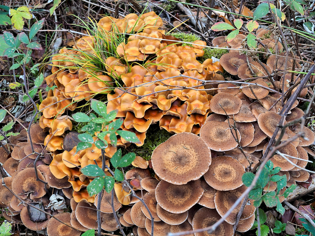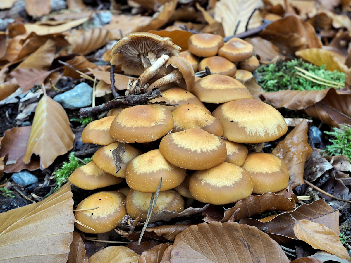 22. Baumpilze gab es auch noch. Der Ziegelrote Schwefelkopf (Hypholoma lateritium)