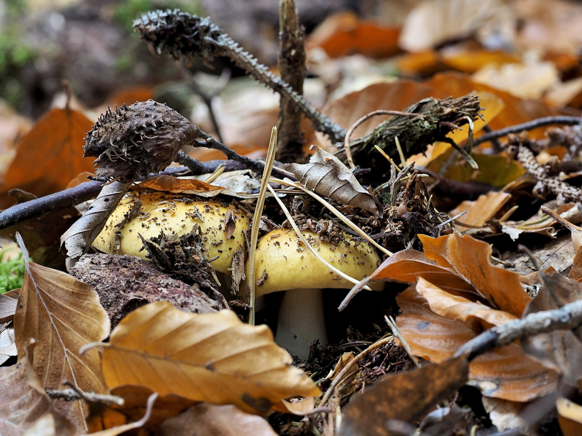 33. und eine Russula ochroleuca, da reicht die Huthaut in Wasser zu mikroskopieren
