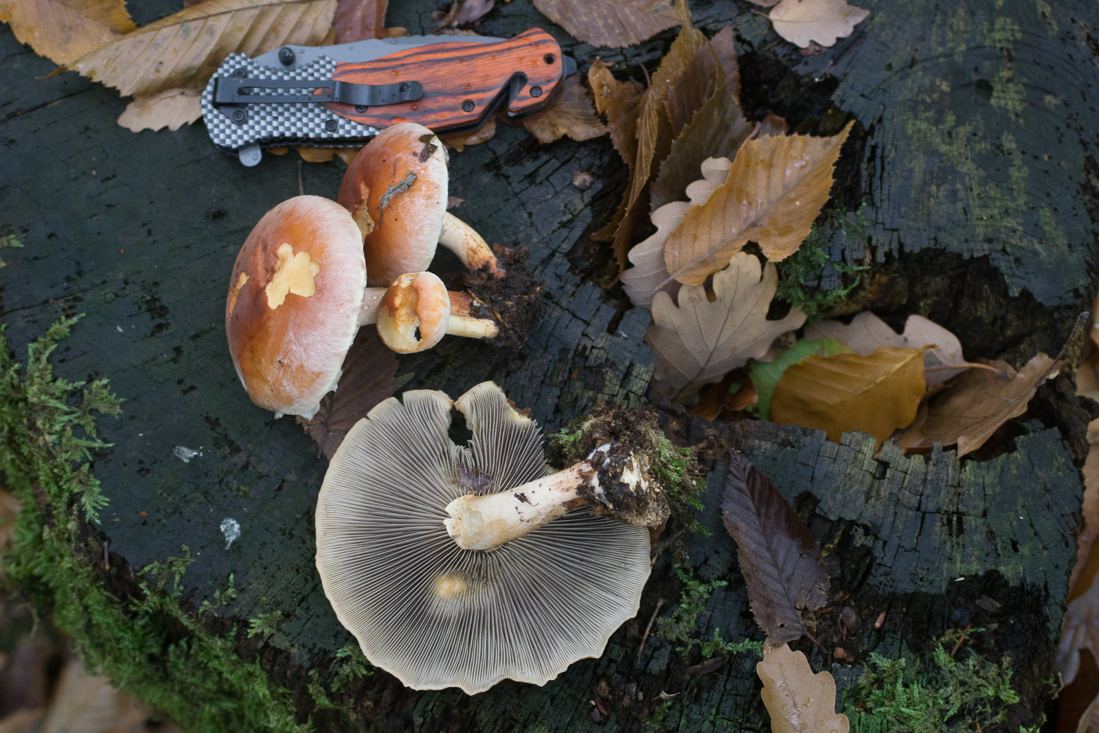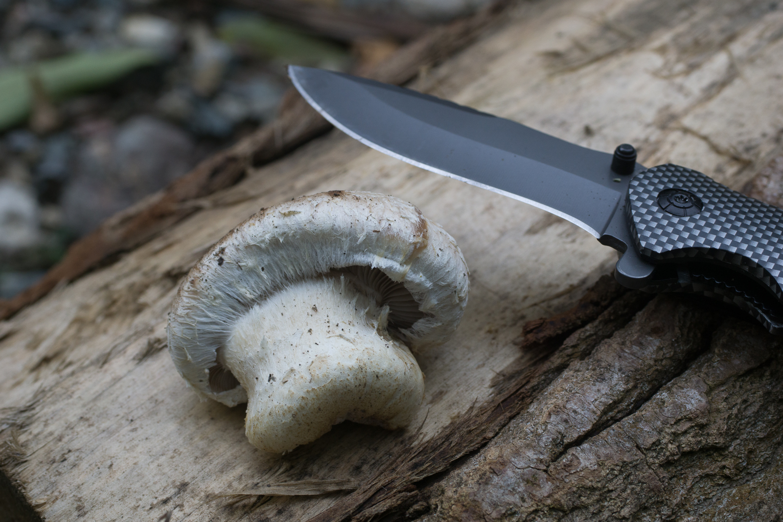 2. Mumienpilz, was es schwierig macht. Eigentlich nur angeschaut, weil der so riesig war. Ich vermute einen ollen Hallimasch? Das Messer hat im zugeklappten Zustand 11,5cm.