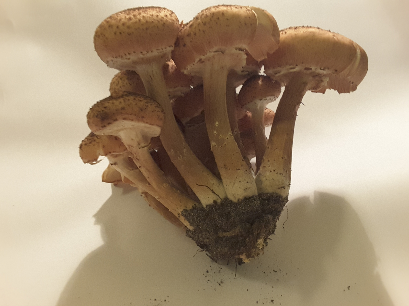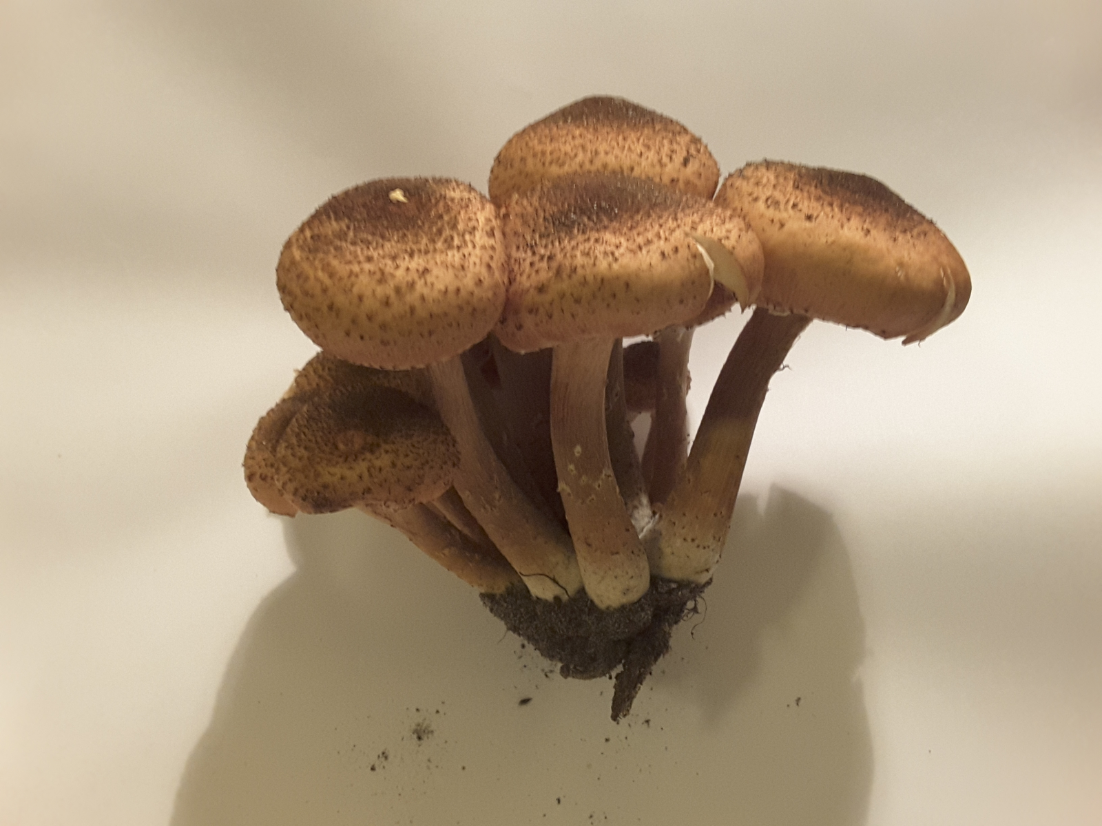 da 2018 bis jetzt wenige Pilze hervorgebracht hat, die ich sicher bestimmen kann, habe ich heute mal etwas neues aus dem Wald mitgenommen (bei Nauen, Brandenburg). Ich möchte mal behaupten, dass es der Dunkle Hallimasch ist, aber weil ich dazu noch keine zweite Meinung hatte, wollte ich ihn hier heute gerne mal mit Foto vorstellen. Gefunden auf einem Stück Totholz, bzw auf dem Boden an einer Stelle, wo ich vergrabenes Totholz vermute. Die Schuppen auf dem Hut lassen sich mit dem Finger abwischen.