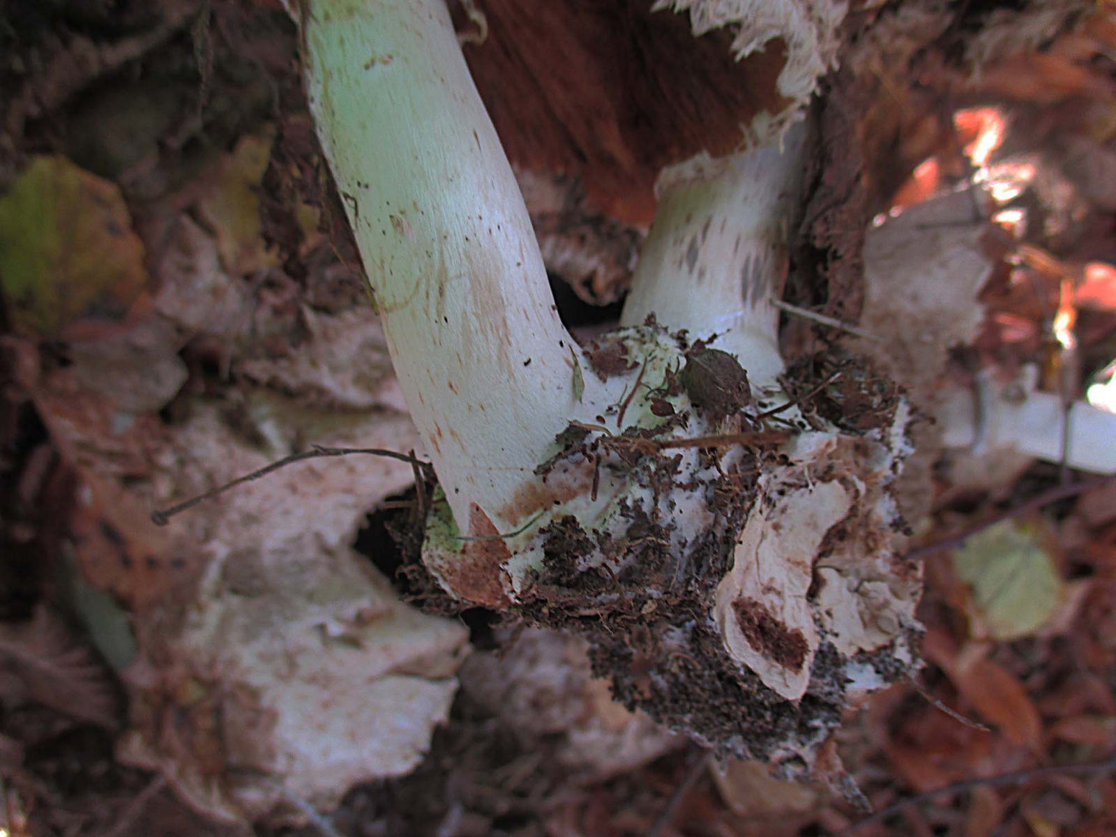Eine gerandete Knolle tritt bei Chlorophyllum olivieri durchaus und gar nicht so selten auf. Sie ist aber nicht so riesig und dick wie bei Chl. brunneum in typischer Ausprägung und ich kenne sie nicht so mit Erde überklebt wie bei dieser Art. Die Knolle ist eher wattig, weich und mit Myzelfilz überzogen. Im Alter ist die aber wie gesagt gerne mehr oder weniger bis deutlich gerandet.
