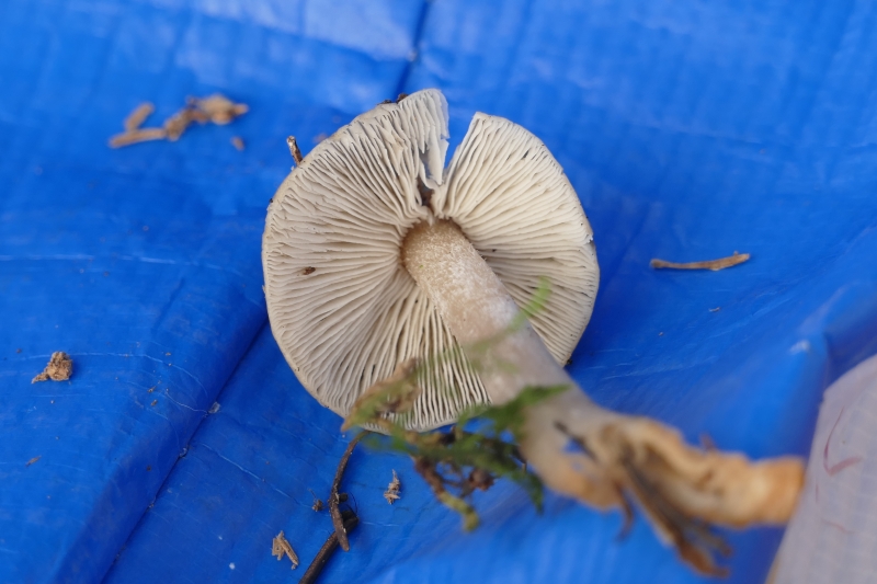 Auf dem Rückweg am Wege im Gras ein Großer Scheidling (Volvariella gloiocephala)