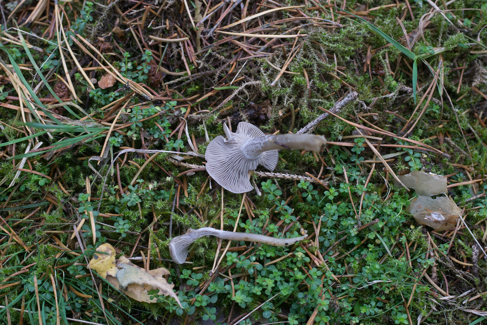 4. Ein Trichterling denke ich. Vielleicht der Laubfreund-Trichterling? Ebenfalls am Wegrand. Geruch war frisch eher mehlig, jetzt finde ich ihn aber eher parfümiert/süßlich, so in der Richtung von Lepista nuda.