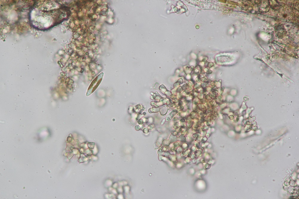 Der Lufteinschluss ist bei den Konidien der aero-aquatischen Hyphomyceten sehr wichtig, damit die an der Wasseroberfläche treiben und sich so möglichst weit verbreiten können. Da gibt es verschiedenste Möglichkeiten durch spezielle Formen Luft einzuschließen, daher kommen diese ganzen oft sehr auffälligen Strukturen der Konidien.