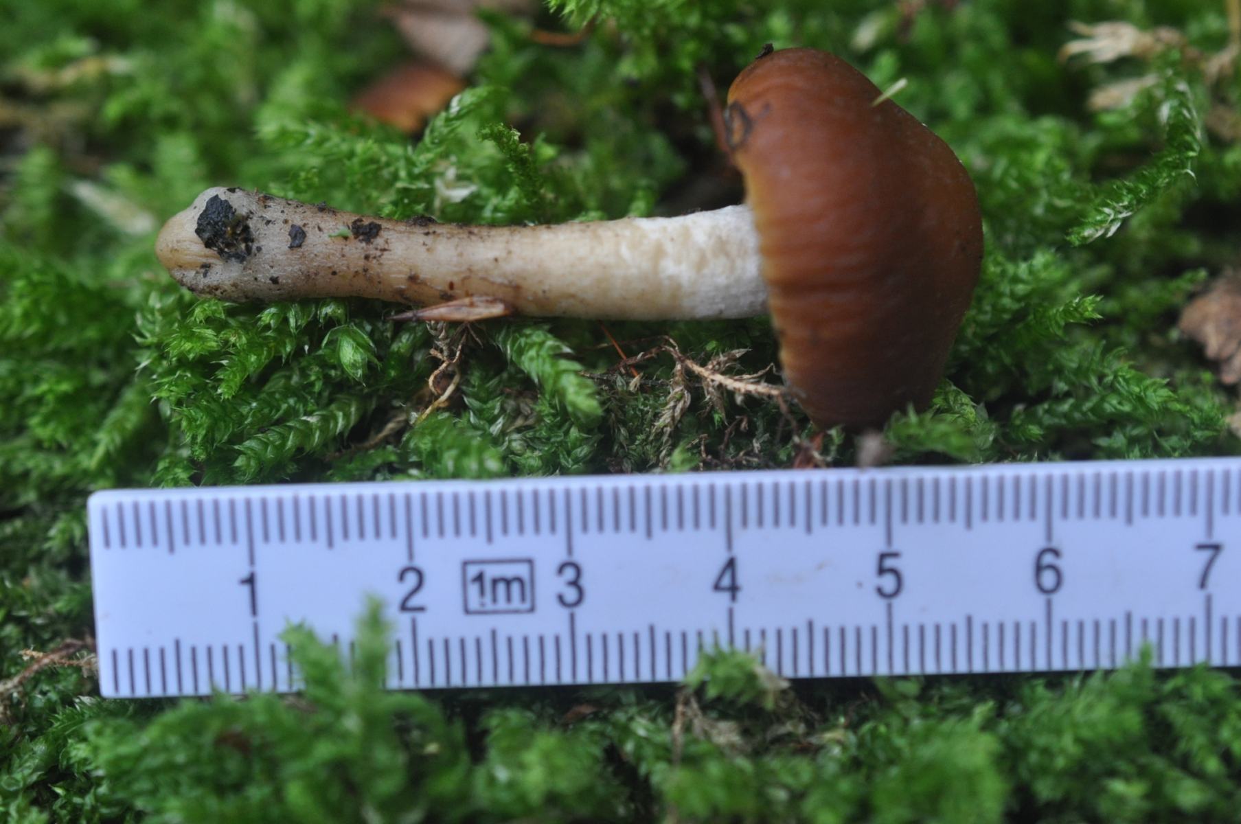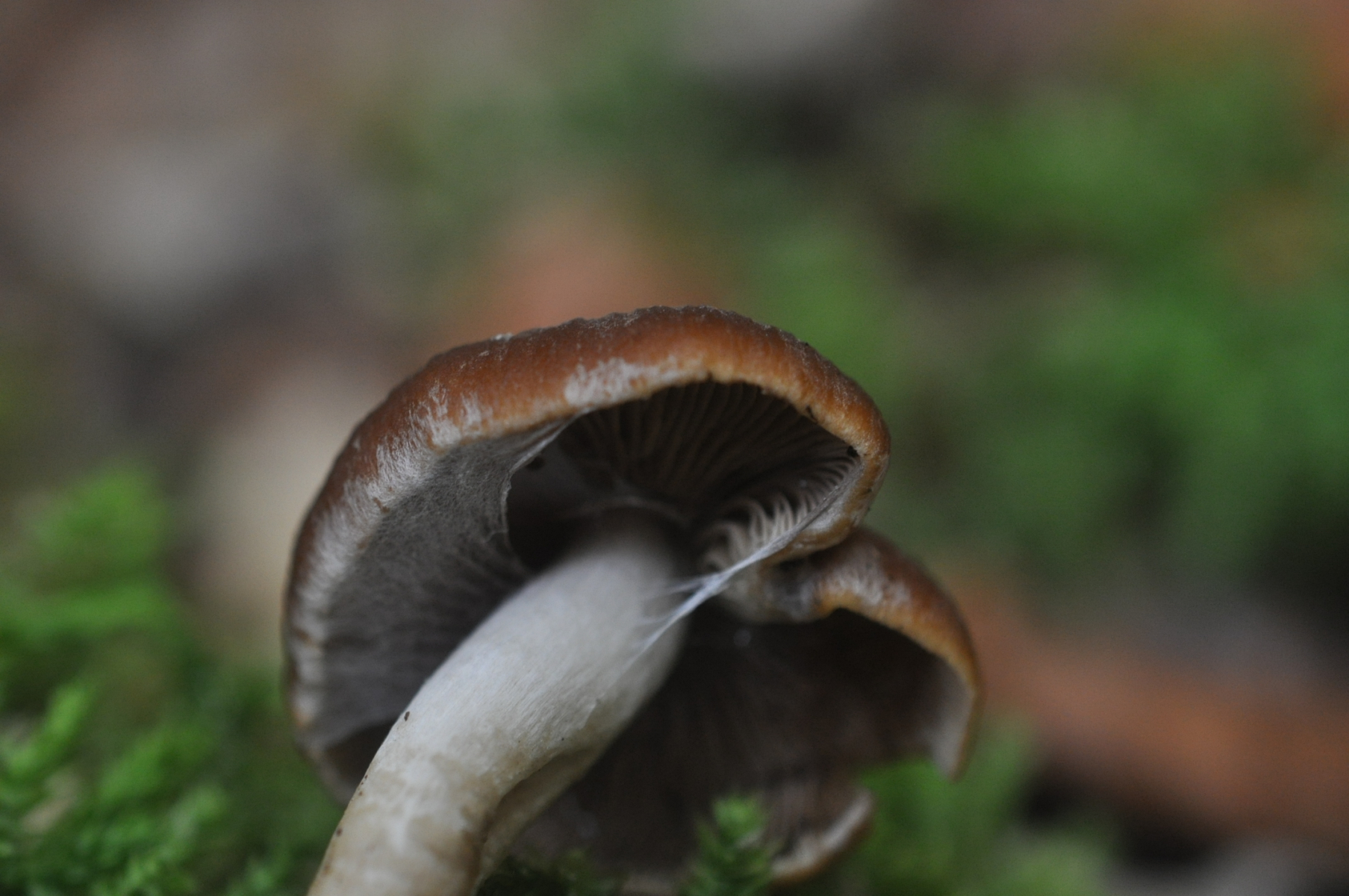 2. Ein Blätterpilz an tote bemooste Fichtenstamm gefunden . Ein Velum teil ist zu sehen . Es war ca 6 Exemplaren , auch 2 mini junge .