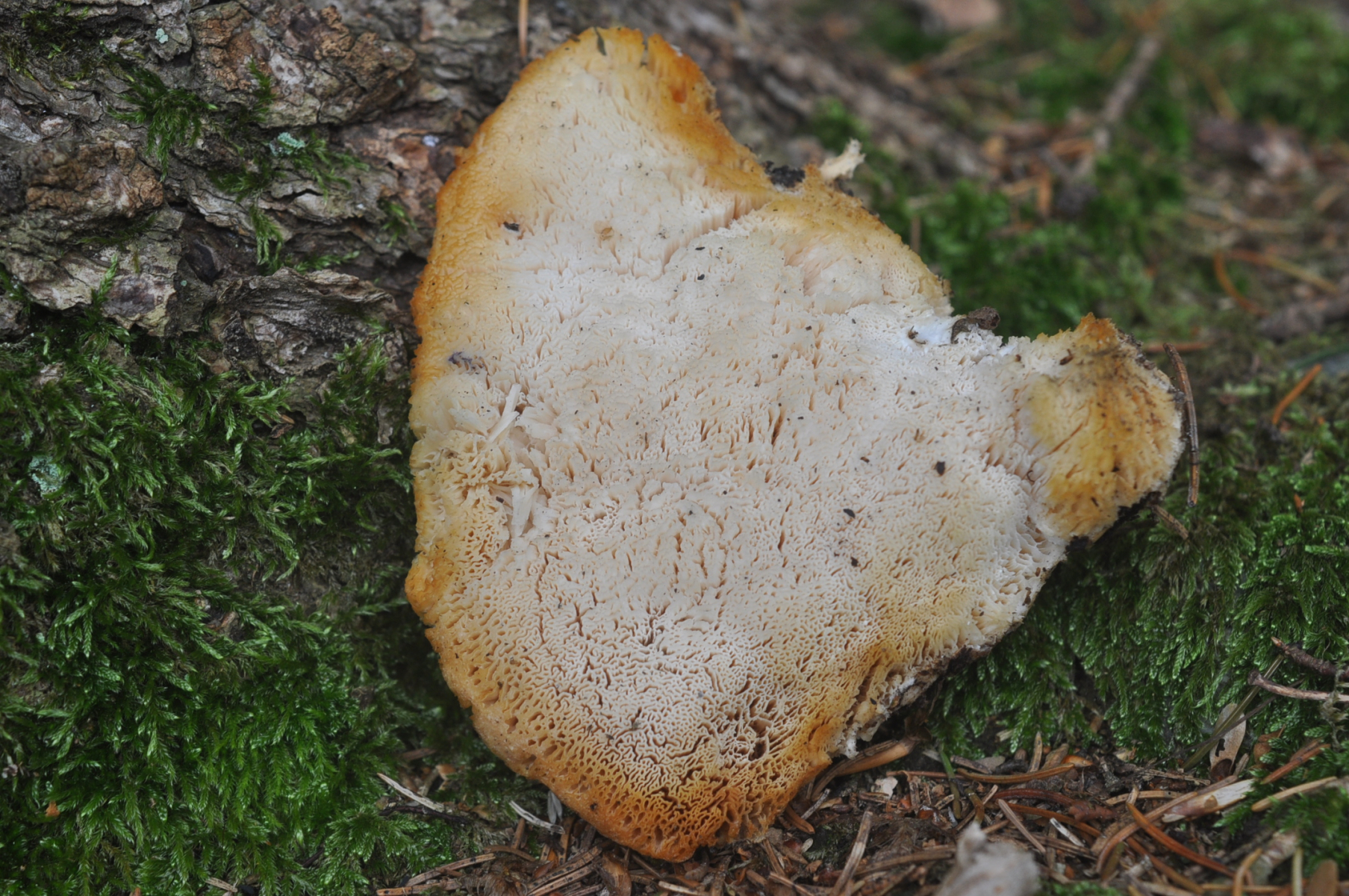 3. Ein mit Poren ? An tote Fichtenstamm gefunden . Mit Finger Fruchtkörper leicht bruchig aber bei Kostprobe Fleisch sehr zach .
