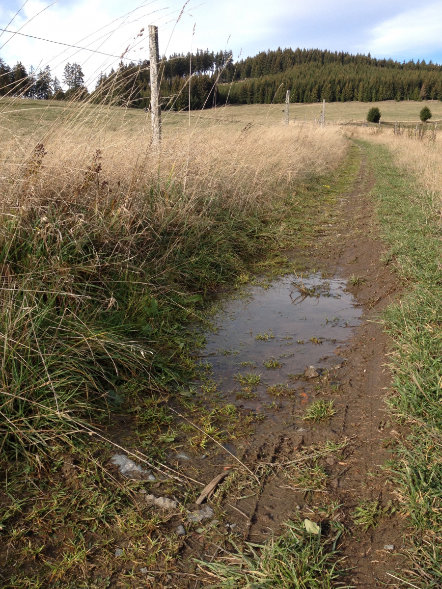 Das war die bemerkenswerteste Entdeckung des Tages. Erstmalig seit Monaten wieder eine Pfütze - immerhin ein Überbleibsel vom Wochenendregen.