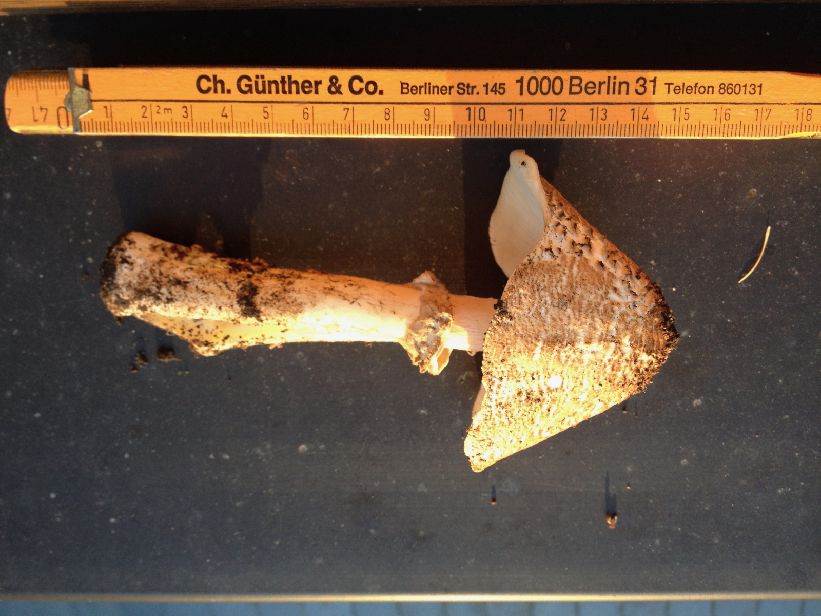Und dann ein Pilz. Ein kapitaler Perser-Pilz. Ein Schirmling sollte es schon sein, meine ich. Das Ähnlichste was ich in den Büchern dazu fand, war der Spitzschuppige Schirmling. Was meint Ihr?