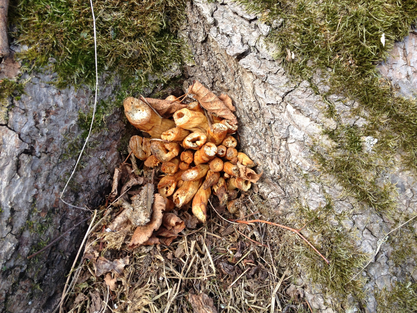 Ein bisschen irritiert hat mich schon, das der Pappelschüppling an Linde wächst. Aber vermutlich gehört das ja wieder zu den Ausnahmen von der Regel. Wie ihr auf dem letzten Bild der Reihe seht, hat da jemand ordentlich Schüpplinge geschnitten und sich mit den vermeintlichen Hallimaschen ein bitteres Süppchen eingebrockt. Da sammeln die Leute schon mal Pilze und dann sind es die falschen. Ich musste wirklich lachen, weil an dem Stubben nebenan Unmengen von Stockschwämmchen standen. Wahrscheinlich hat der Pilzschabschneider einen Abzählreim verwendet und falsch begonnen