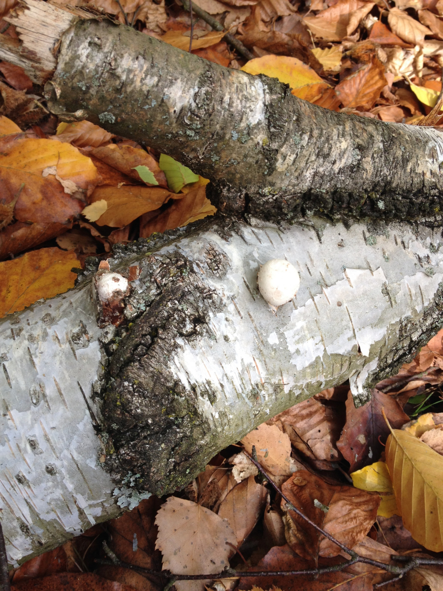 Mitten auf dem Weg guckt mich jemand an - ein Pferd vielleicht? Der Sturm hatte am Montag ganze Arbeit geleistet. Mal sehen, ob die kleinen Birkenporlinge noch ein bisschen wachsen.