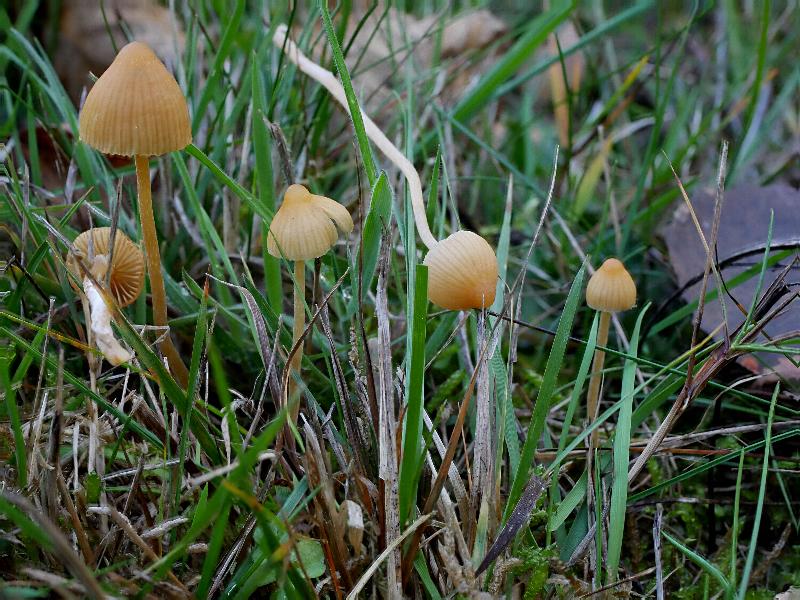 Der Helmling mit den gefärbten Schneiden, zahlreich und sehr formenvariabel auf den Buntwiesen war Mycena olivaceomarginata.