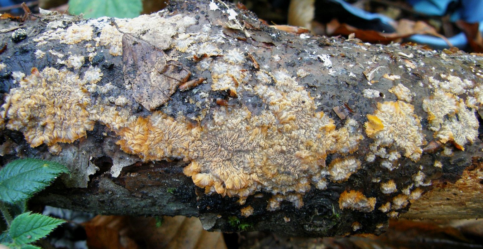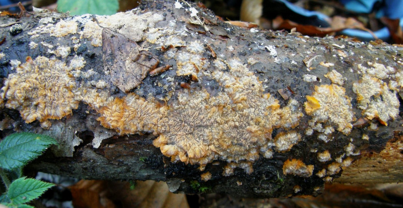 Phlebia radiata = Orangeroter Kammpilz: