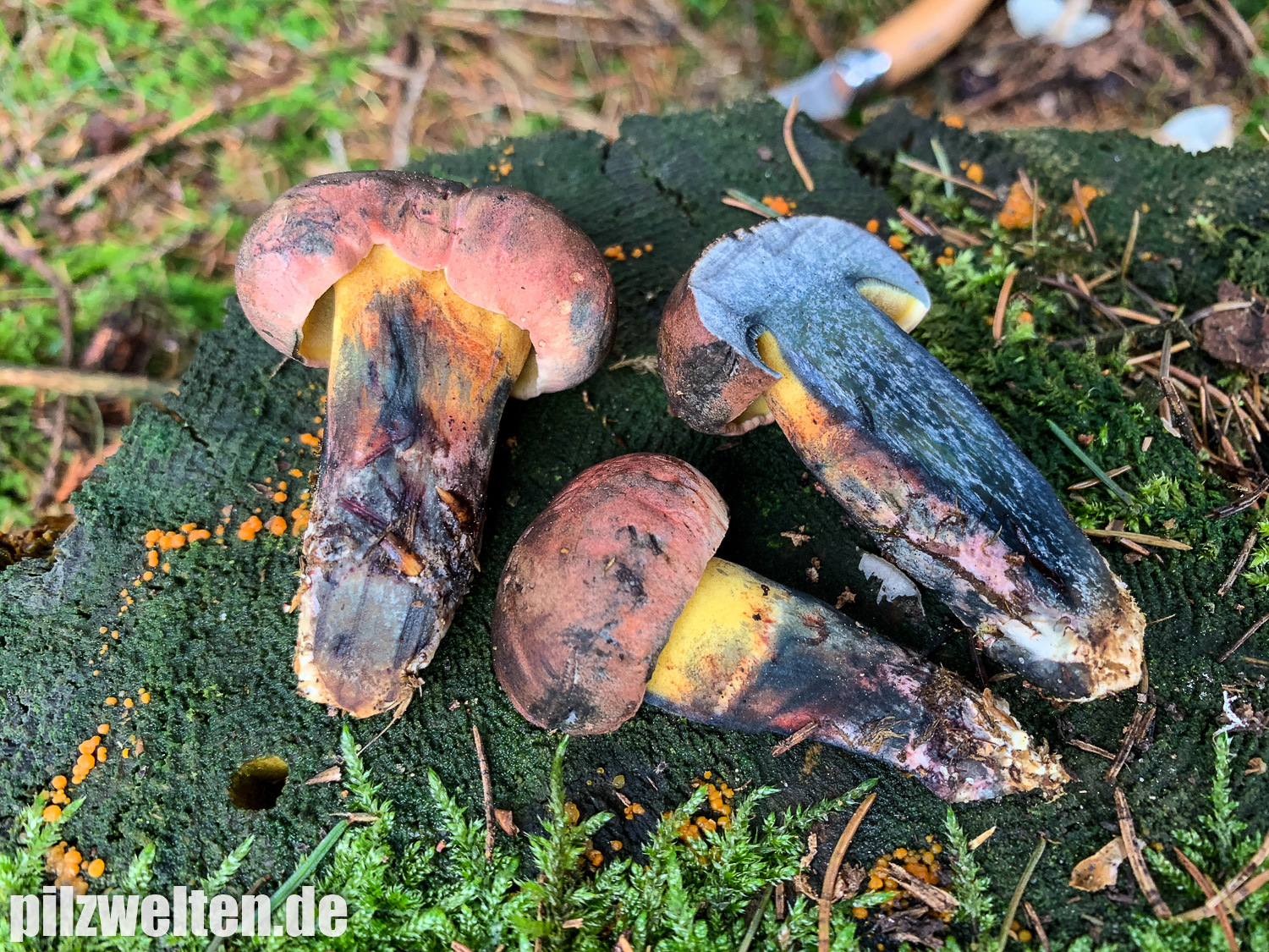 11. Rosahütiger Schwarzblauender Röhrling, Boletus pulverulentus var. mougeotii
