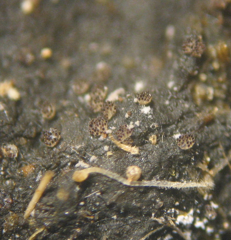 Das Cleistothecium ist grade mal 100µ, und hat dickwandige, braune Seten/Haare